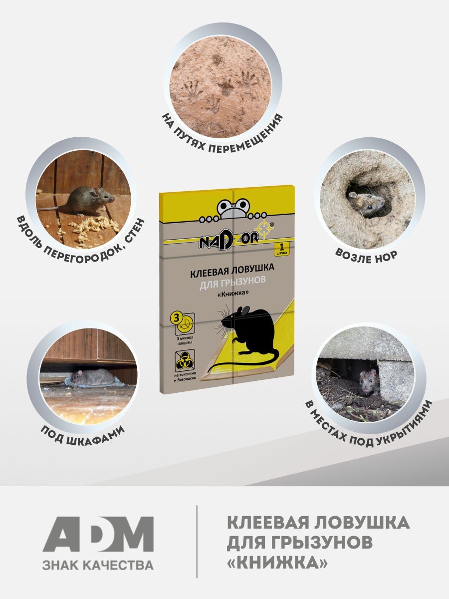 Клеевая ловушка для грызунов NADZOR "Книжка", 1 шт. в упаковке