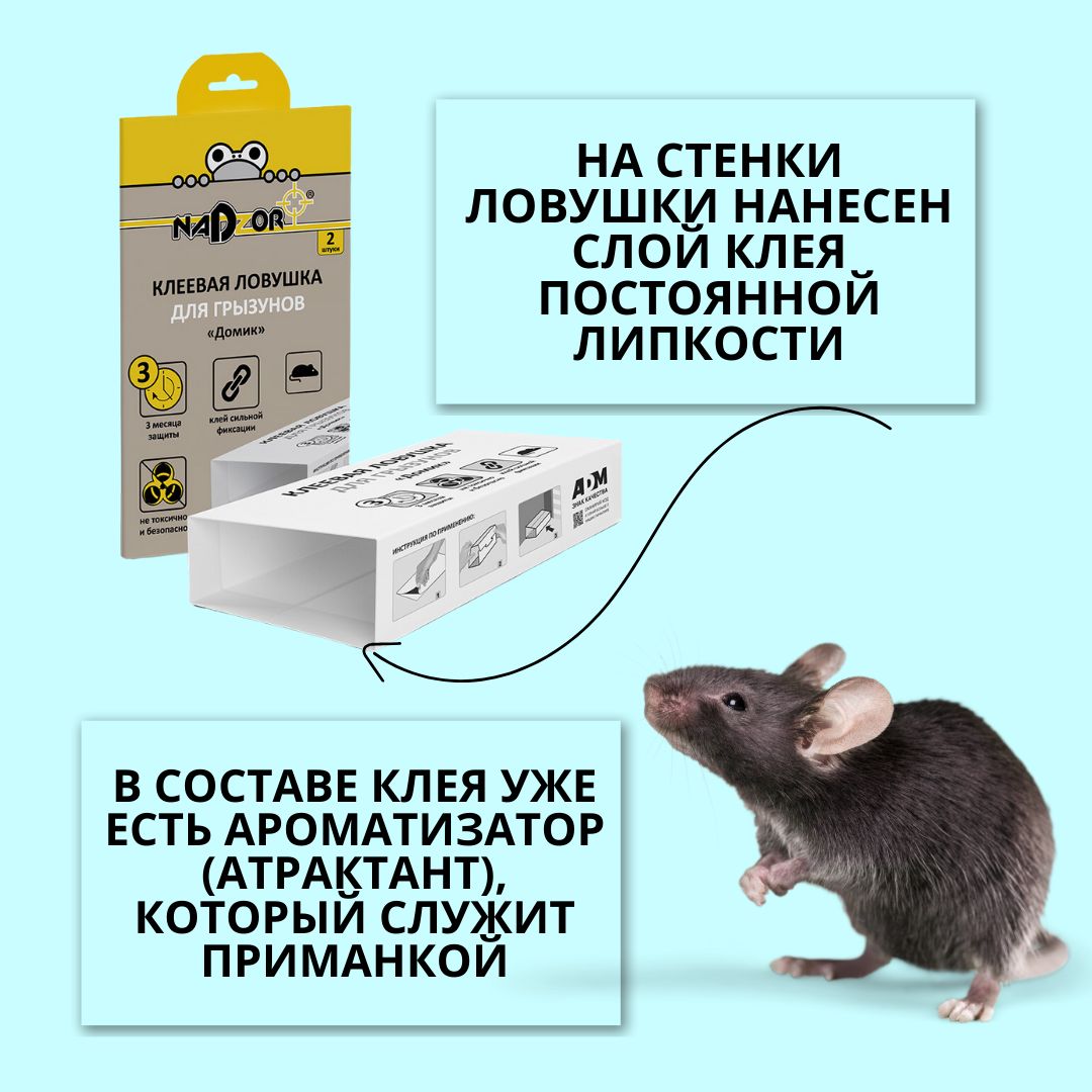Клеевая ловушка Nadzor для крыс и мышей Nadzor / Ловушка Домик для грызунов и вредителей / 2 шт