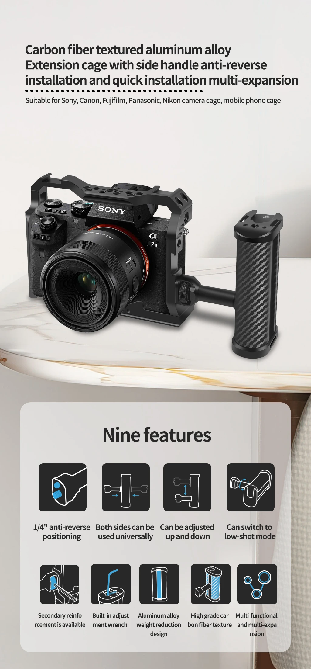Новая Универсальная Боковая ручка из алюминиевого сплава Регулируемая рукоятка 1/4 "винт для камер Sony Canon Nikon клетка для холодного башмака крепление для микрофона держатель для телефона