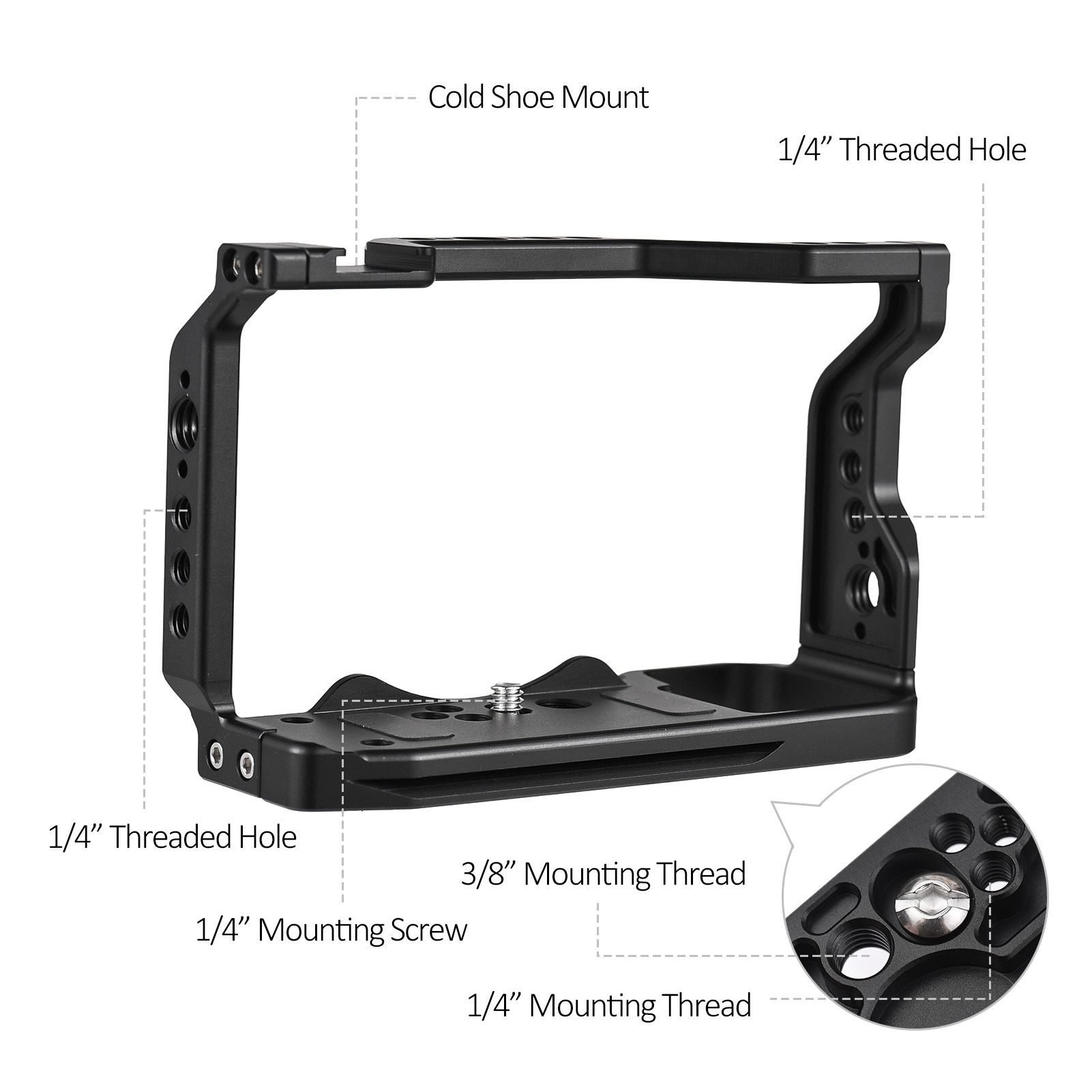【Широкая совместимость】 Благодаря расширению с несколькими отверстиями и встроенным винтовым портам 1/4 дюйма и 3/8 дюйма эта клетка для камеры хорошо совместима с широким спектром аксессуаров, что делает ее универсальным выбором для фотографов.