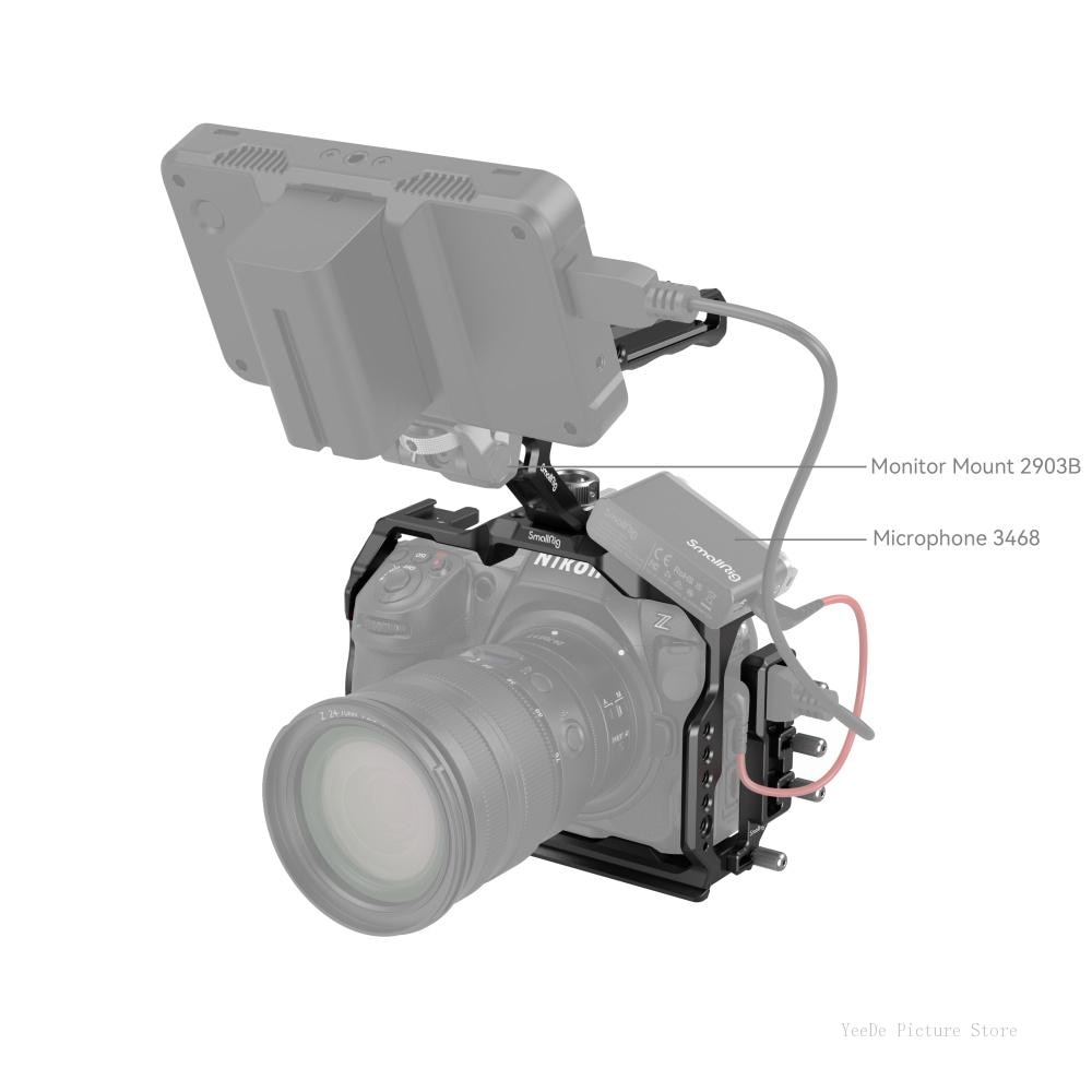 Комплект клетки SmallRig для Nikon Z 8 3941Портативный и предназначен для помощи при съемке с рук и прикрепления аксессуаров. Он включает в себя клетку, зажим для кабеля HDMI и USB-C и верхнюю ручку. С резьбовым отверстием 1/4 ''-20, резьбовым отверстием 3/8''-16, установочным отверстием ARRI 3/8 ''-16, рейкой NATO и креплением для холодного башмака в комплект можно установить монитор, микрофон, штатив, следовой фокус, ручка и т. д. Среди трех частей клетка фиксирует камеру одним нижним винтом 1/4''-20, одним установочным штифтом, И один адаптер бокового замка; Эргономичная ручка облегчает съемку в движения, обеспечивая удобный и стабильный пользовательский интерфейс; а зажим для кабеля HDMI и USB-C, затянутый ручным винтом, обеспечивает стабильную передачу сигнала. Кроме того, в комплект входит Магнитный двусторонний ключ для легкой разборки и сборки.