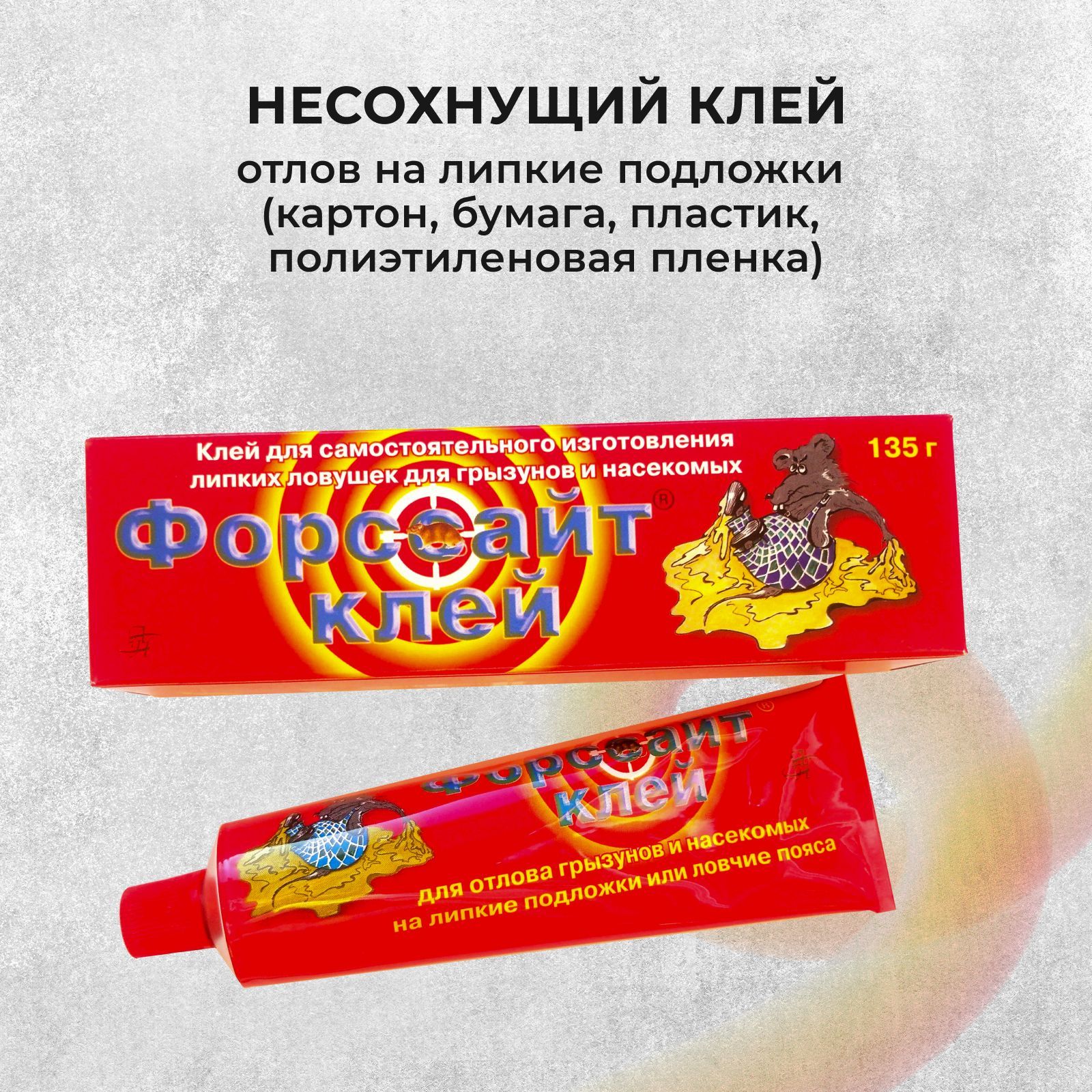 Клей для изготовления ловушек для грызунов и насекомых Форс-сайт (Форссайт), 135 г, средство от муравьёв, крыс, змей. Отрава от вредителей с клеевой основой.