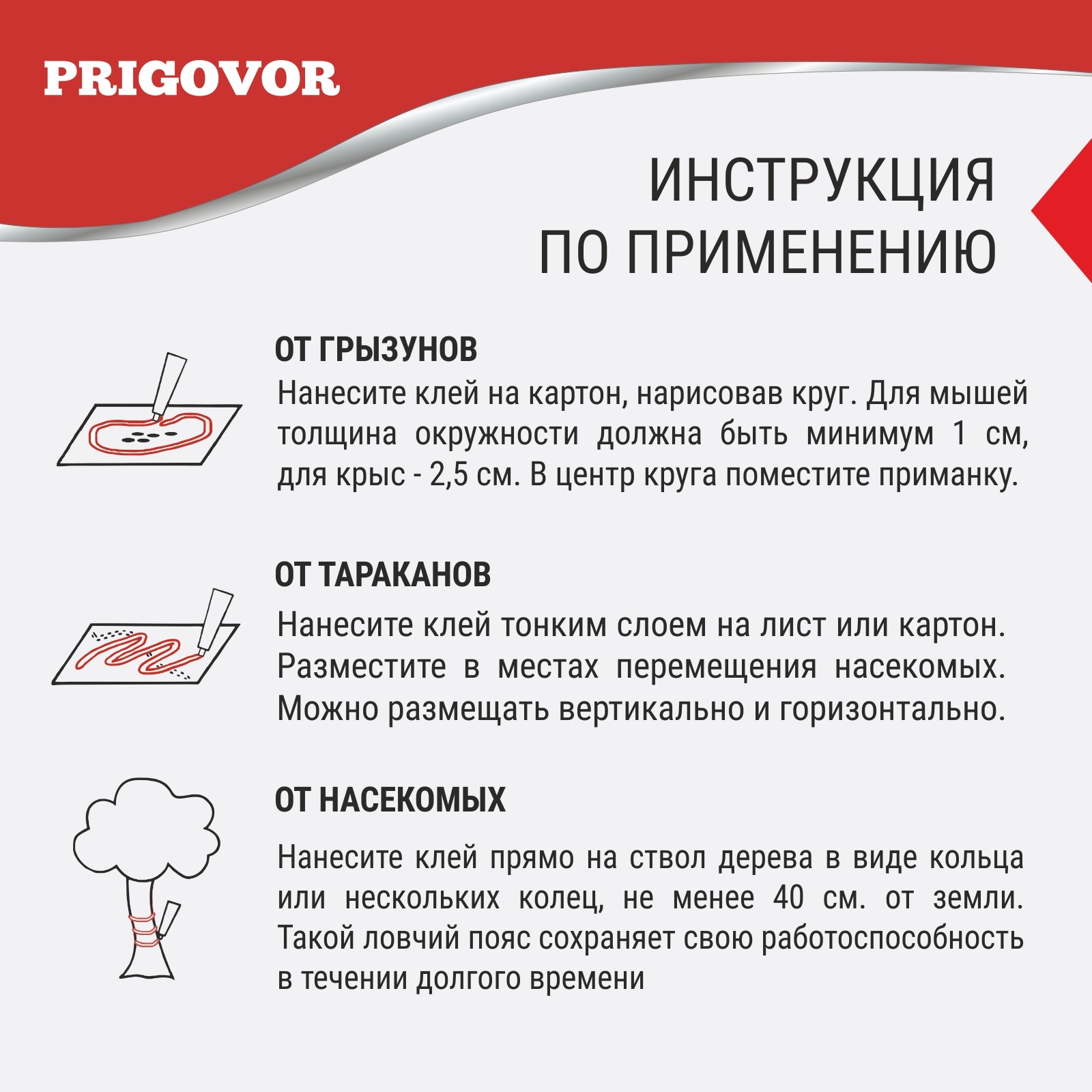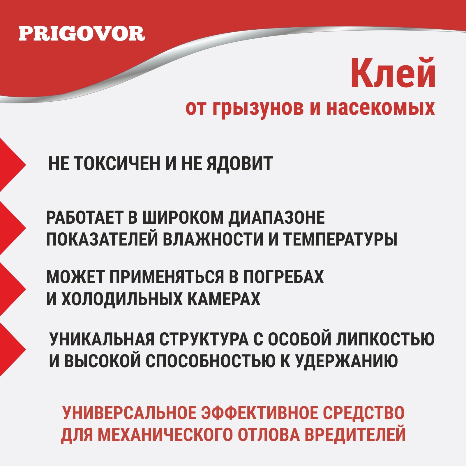 Описание: Клей с усиленной формулой липкости Prigovor, предназначен для борьбы с грызунами, садовыми вредителями и бытовыми насекомыми, от производителя !