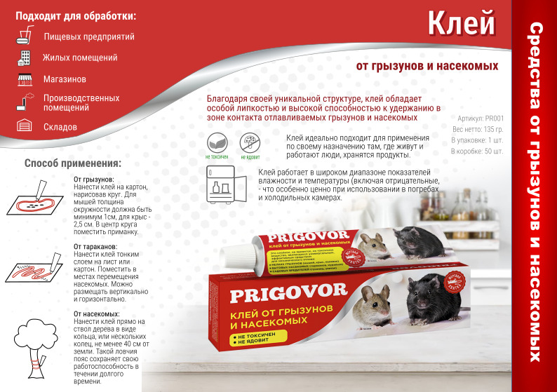 Клей от грызунов, клей от мышей и крыс, бытовых насекомых и садовых вредителей, Prigovor, 135 гр.
