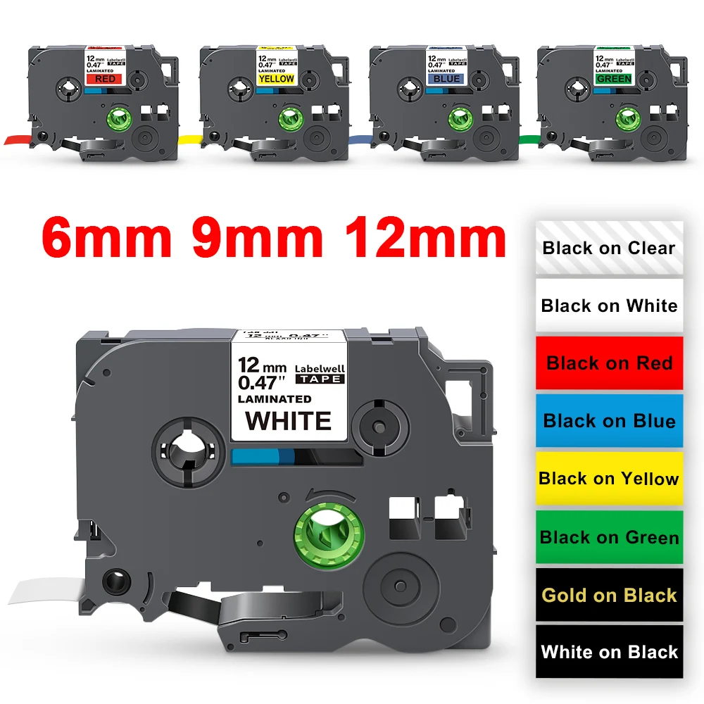 Labelwell 6/9/12mm 231 Label Tape Compatible for Brother 231 431 531 631 731 831 Label cartridge Replace for Brother P Touch label maker PTH110 PTH105 PTD210 PTD215