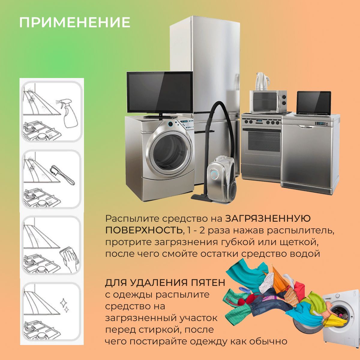 2. Распылить на пятно на одежде перед стиркой.