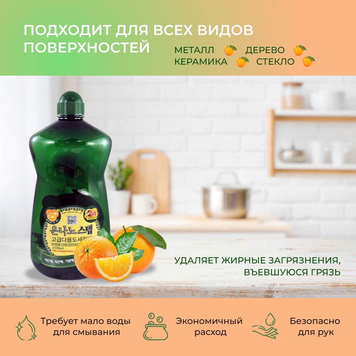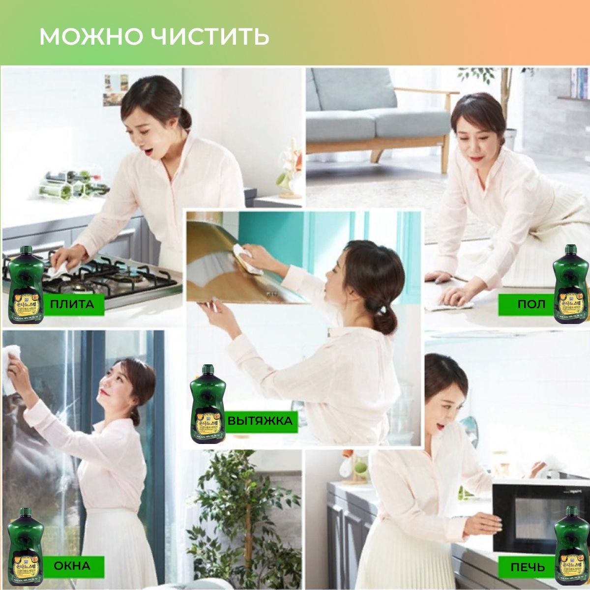 Особенности продукта: чистящее корейское эко средство для уборки защищает и не сушит кожу, не оставляет разводов, отличный жироудалитель.