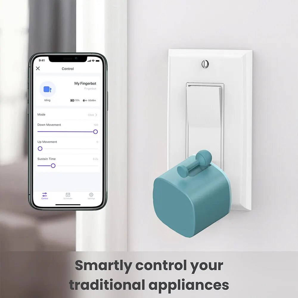 Умное управление традиционными приборамиУстановите этот Blue tooth fngerbot на традиционный Открыватель двери гаража и откройте его в заданное время, когда прибудете домой.Примечание. Для беспроводного пульта дистанционного управления требуется концентратор с синим зубом, когда вас нет дома.Умно Включите робота для мытья полов в доме в приложении Smart Life для уборки дома.