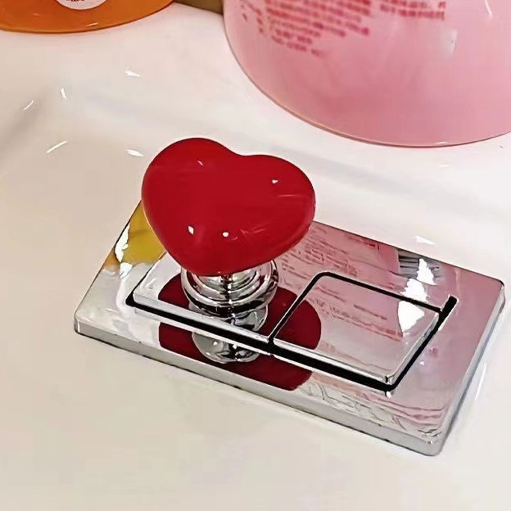 1. Красочная кнопка для унитаза в форме сердца: Этот креативный аксессуар для унитаза оснащен яркой кнопкой в форме сердца для бачка унитаза.