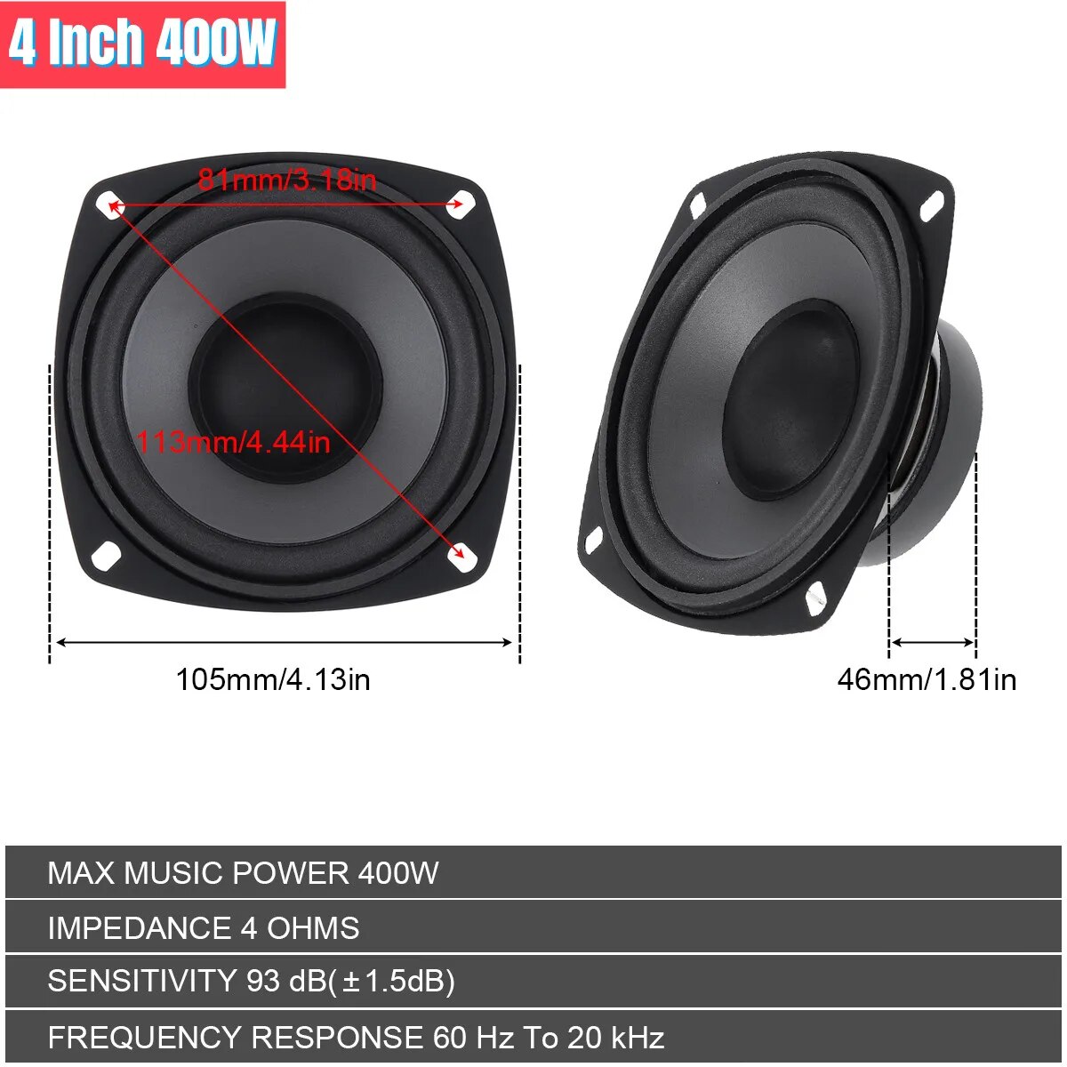 • 4 дюйма 300W