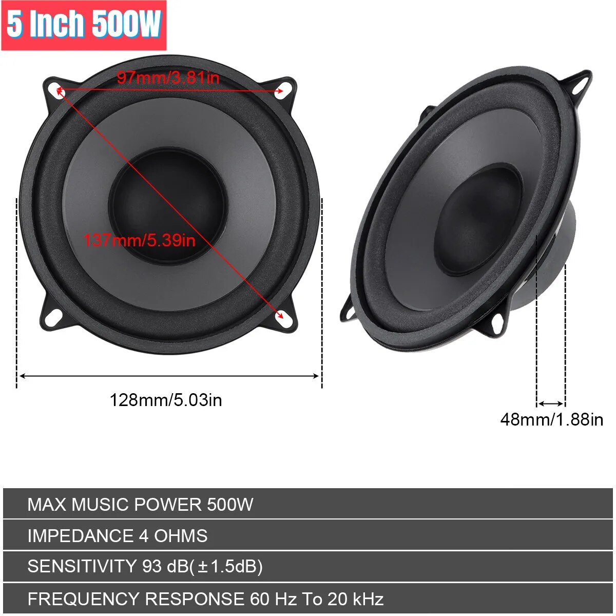 Коаксиальный HiFi Динамик для автомобиля, 1 шт., 4/5/6, 5 дюймов, 400 Вт, 500 Вт, 600 Вт, двухсторонний, для двери автомобиля, аудио, музыкальные стерео колонки с полным диапазоном частот