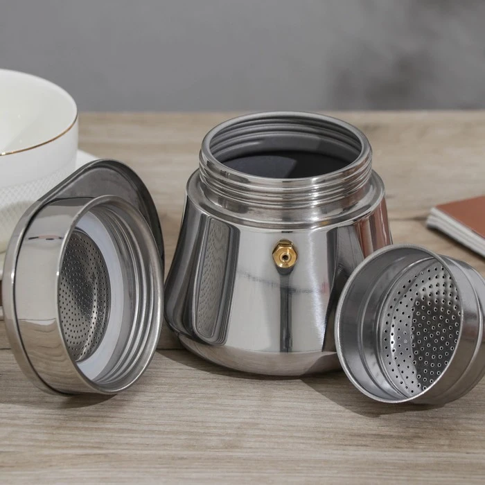 Как приготовить самый вкусный кофе в гейзерной кофеварке? Для начала отвинтите верхнюю часть и достаньте фильтр-воронку.