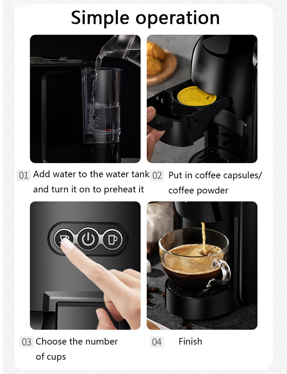 МНОЖЕСТВЕННАЯ ФУНКЦИЯ 3-в-1: Совместимость с Nespresso или его капсулами-клонами, Dolce Gusto или его капсулами-клонами, молотым кофе, чтобы использовать свой собственный Кофейный аромат