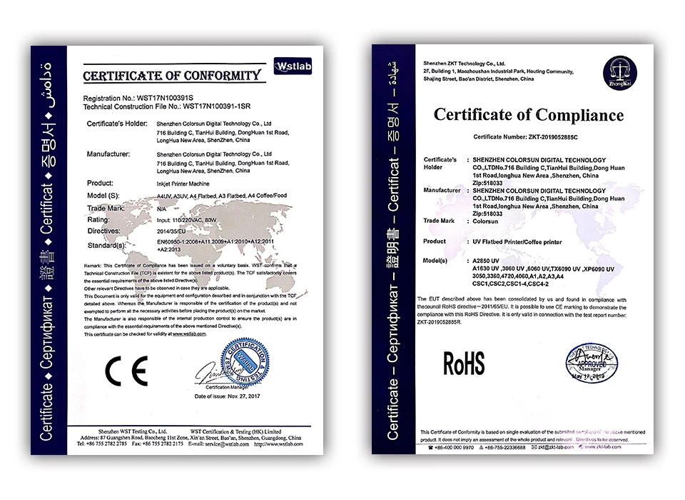 Сертификация для кофе принтера: