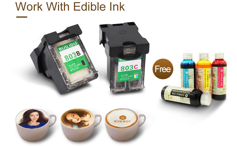 3. Съедобные чернила: безопасность низкая стоимость: чернила 4*100 мл могут печатать около 2000-3000 чашек кофе