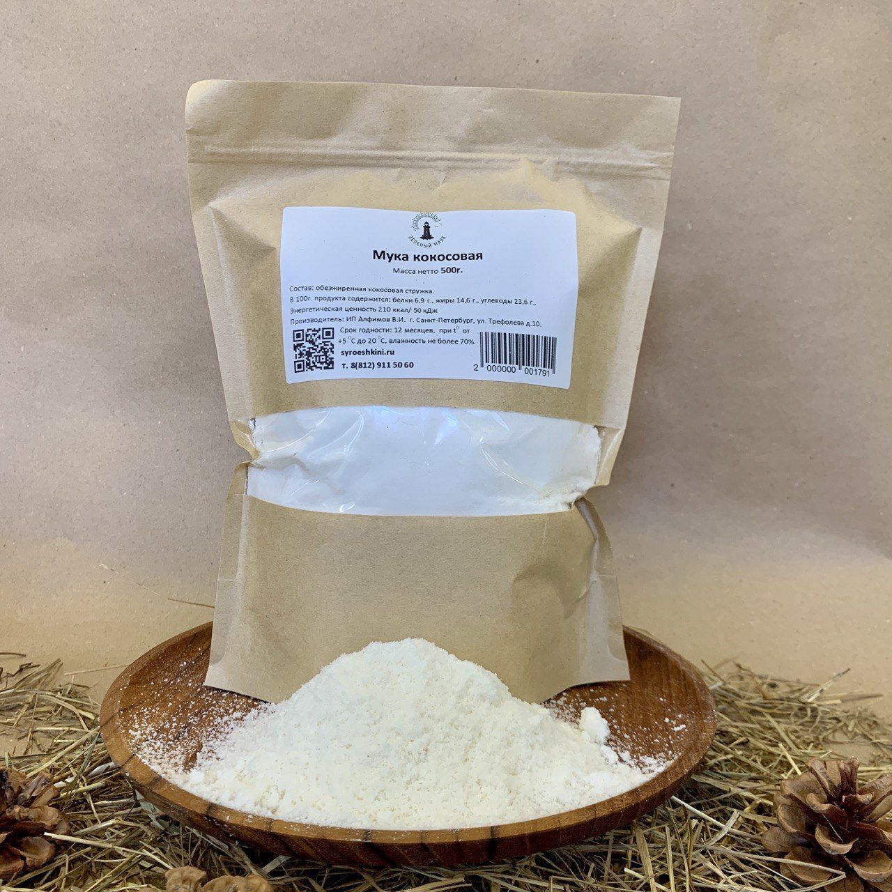 Кокосовая мука, без глютена, низкоуглеводная, Зеленый маяк, 500 гр