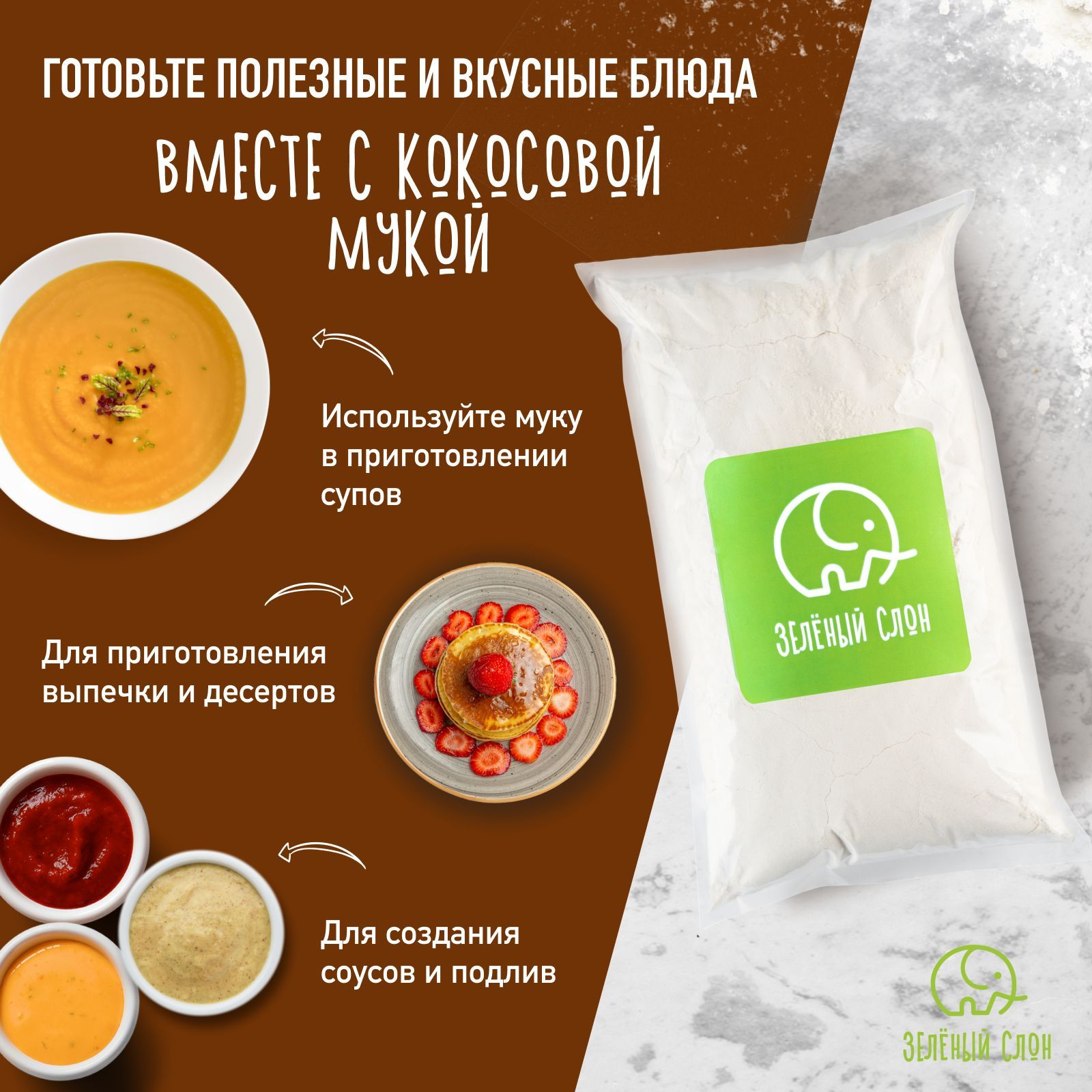 Кокосовая мука, для выпечки пп продукты Зеленый Слон 1 кг
