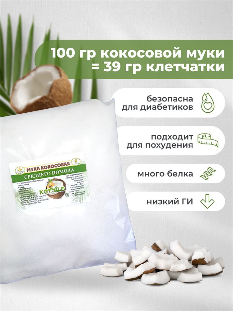 Описание: Состав: частично обезжиренная мякоть кокоса. Помол средний