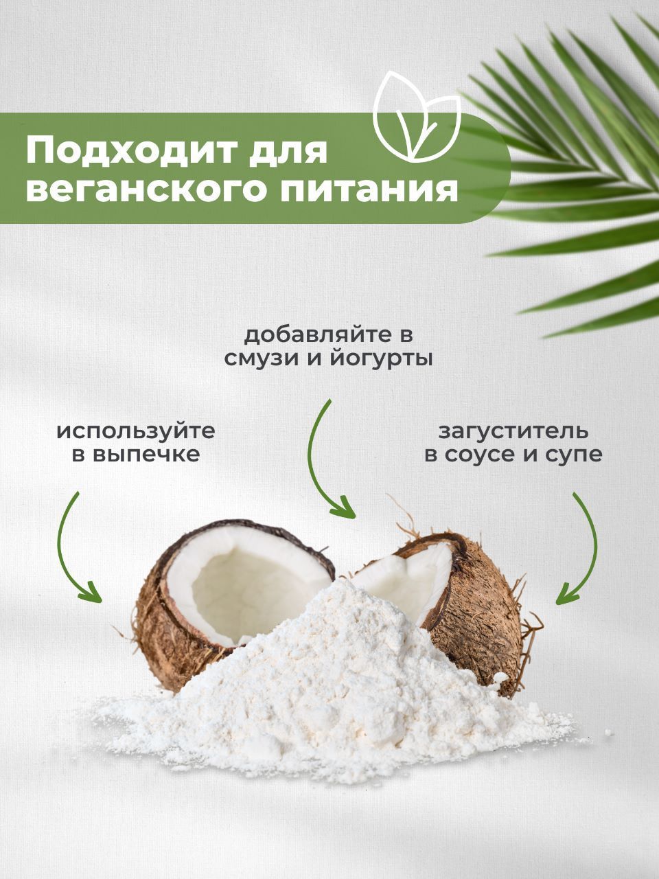Описание: Состав: частично обезжиренная мякоть кокоса. Помол средний Пищевая ценность на 100 г:350 кКал, жиры - 17г, белки - 18г, углеводы - 54г (клетчатка - 36г) Вид и форма упаковки может отличаться.Клетчатка, содержащаяся в Кокосовой Муке относится к неперевариваемому типу. Она деликатно очищает наш кишечник изнутри, предотвращает запоры и поддерживает нормальную перистальтику. У Кокосовой Муки есть несколько неоспоримых преимуществ над обычной мукой: Не содержит Глютен — аллерген, содержащийся в пшенице, ржи и перловке. Идеально подходит для людей, избегающих Глютен или имеющих чувствительность к нему. Находится на 1 месте по количеству клетчатки из всех известных видов муки. В 100 гр Кокосовой Муки содержится 39 гр неперевариваемой клетчатки. Что в 2 раза больше, чем в пшеничных отрубях, которые стали очень популярны среди большого количества людей. Но многие люди и не подозревают, что отруби содержат большое количество антинутриентов и приносят больше вреда, чем пользы.* Содержит высокое количество полезного жира. В 100 гр — 8.7гр (из них 8 гр приходится на полезный насыщенный жир). Среднецепочечные триглецириды, которые входят в состав Кокосовой Муки, обладают антивирусной, антибактериальной, антигрибковой активностью. Они улучшают метаболизм и синтез энергии, не откладываются в жировые клетки, а сразу расходуются на энергию. Поэтому эта мука идеально подходит для тех, кто пытается похудеть или поддерживать нормальный вес.* Подходит для диабетиков, так как содержит небольшое количество углеводов и медленно повышает уровень сахара в крови.* Богата белком. В 100 гр содержится 19.3 гр белка. Что намного превышает содержание белка в других видах муки.* Содержит небольшое количество Омега-6 кислот по сравнению с мукой из орехов и семян. Чрезмерное употребление Омега-6 оказывает провоспалительное действие на наш организм и ведет к хроническим заболеваниям. Не содержит ингибиторов пищеварительных ферментов в отличие от обычной муки, фасоли и орехов, поэтому не может препятствовать перевариванию и усвоению нутриентов, в том числе минералов.* Экономична. Требуется в 2 -3 раза меньшего количества, чем обычной муки.* Содержит Лауриновую кислоту, которая поддерживает нашу иммунную систему и нормализует функцию щитовидной железы.* Богата Марганцем, который необходим для усвоения многих витаминов и минералов, а также для здоровой функции опорно-двигательного аппарата, нервной системы и регуляции уровня сахара в крови. Хочу предупредить сразу — у Вас не получится просто взять и заменить пшеничную иди любую другую муку кокосовой. Кокосовая Мука — уникальна. Поэтому рекомендую или самим экспериментировать с количеством ингредиентов или искать рецепты, специально разработанные для Кокосовой Муки. В связи с тем, что в муке есть определенный процент кокосового масла, то возможно замерзание муки при пересылке. Для возвращения ее в исходное состояние достаточно оставить ее при комнатной температуре до размягчения.