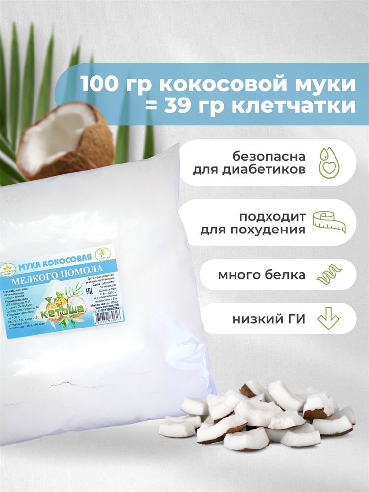 Кокосовая мука мелкого помола 1 кг 2 штуки