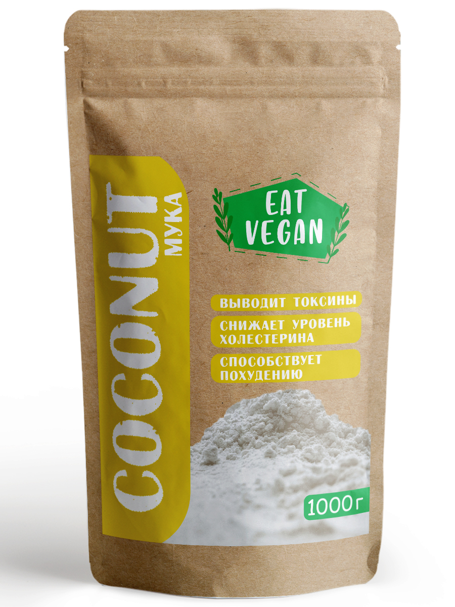 Кокосовая мука натуральная низкоуглеводная без глютена для выпечки, 1 кг / 1000 г. Шри Ланка (Сoconut flour) 100% Пищевая EAT VEGAN, Мелкого помола, для Десертов, для Кондитерских изделий, мука из кокоса