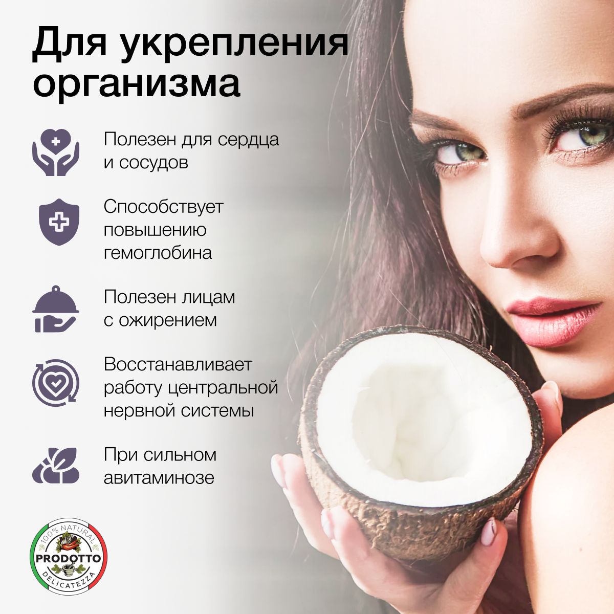 Комплекс веществ, содержащихся в кокосовой стружке, благотворно влияет на нервную систему организма. При регулярном употреблении в пищу этого продукта повышается мозговая активность, увеличивается трудоспособность, улучшается общее самочувствие и настроение. Не содержит сахара. Кокосовая стружка — это больше, чем кондитерский ингредиент.