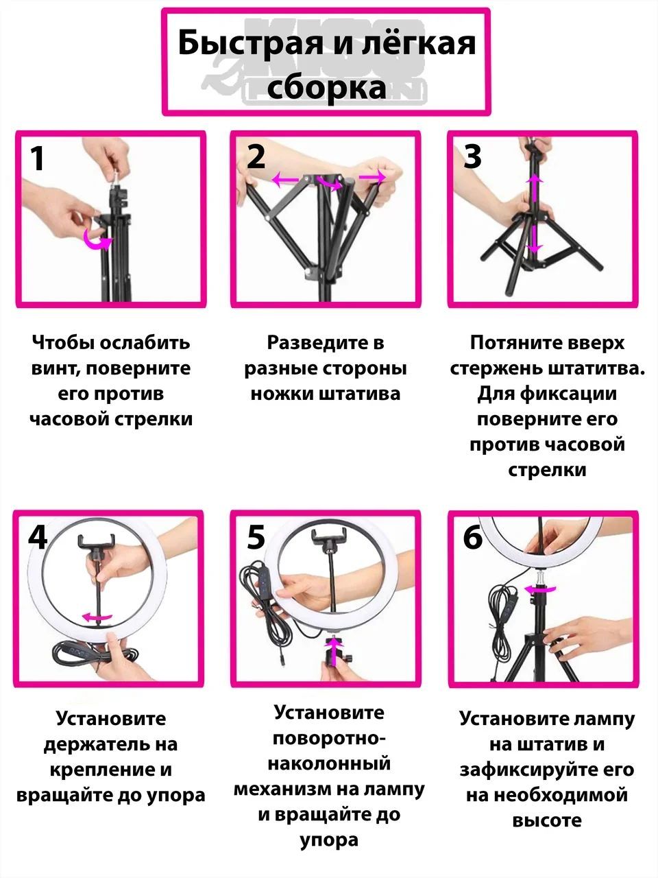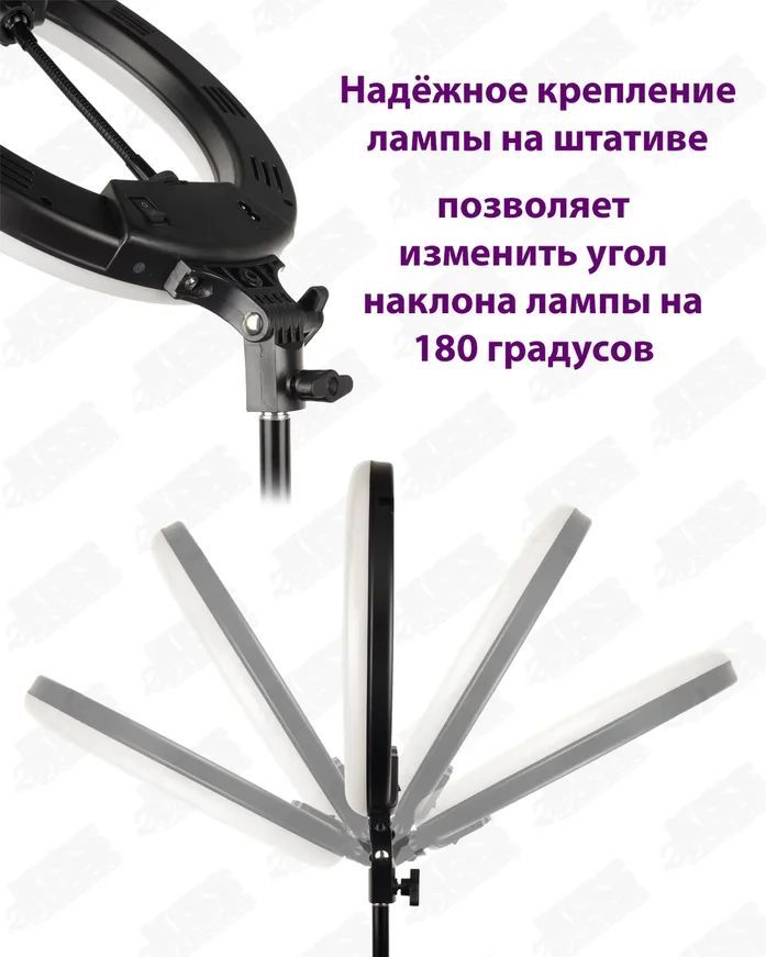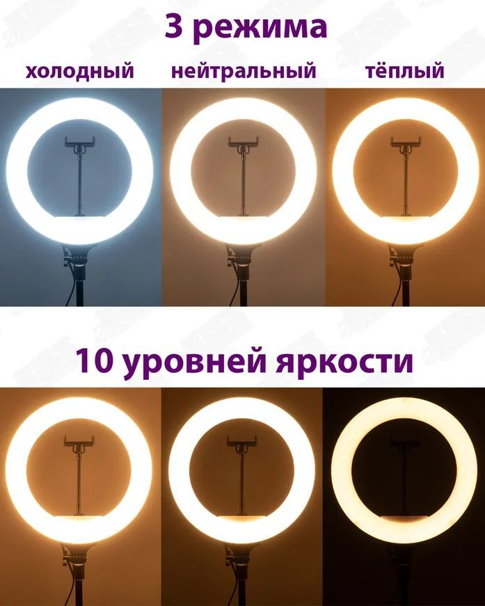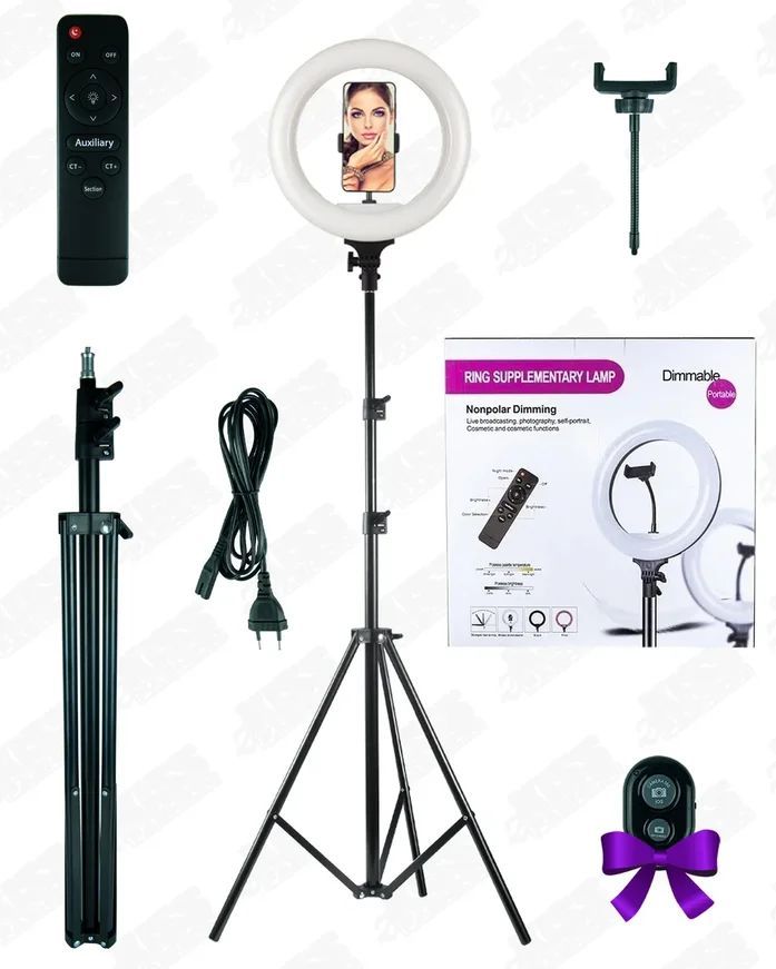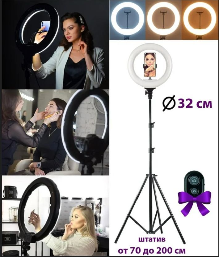 кольцевая лампа 32 см; напольный штатив; держатель для телефона - 1 шт.; селфи-пульт; пульт ДУ