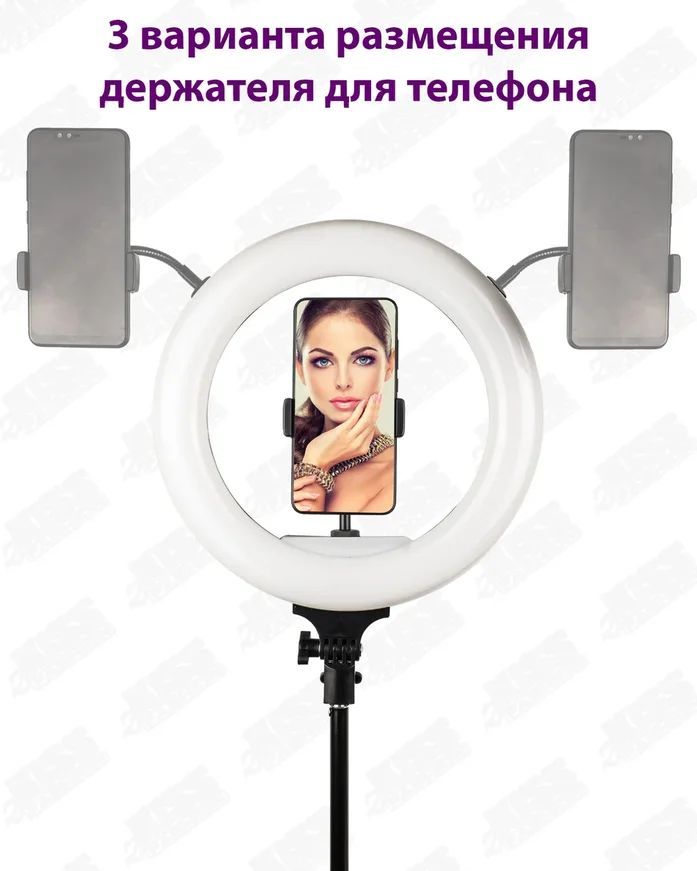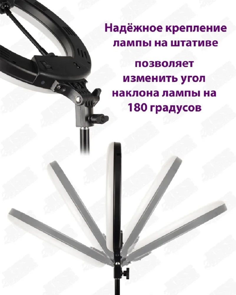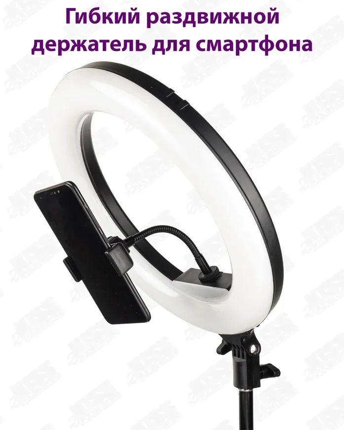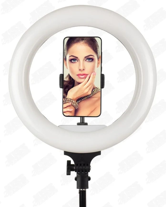 Кольцевая лампа 32 см со штативом держателем для телефона селфи-пультом и пультом ДУ. Модель 123157