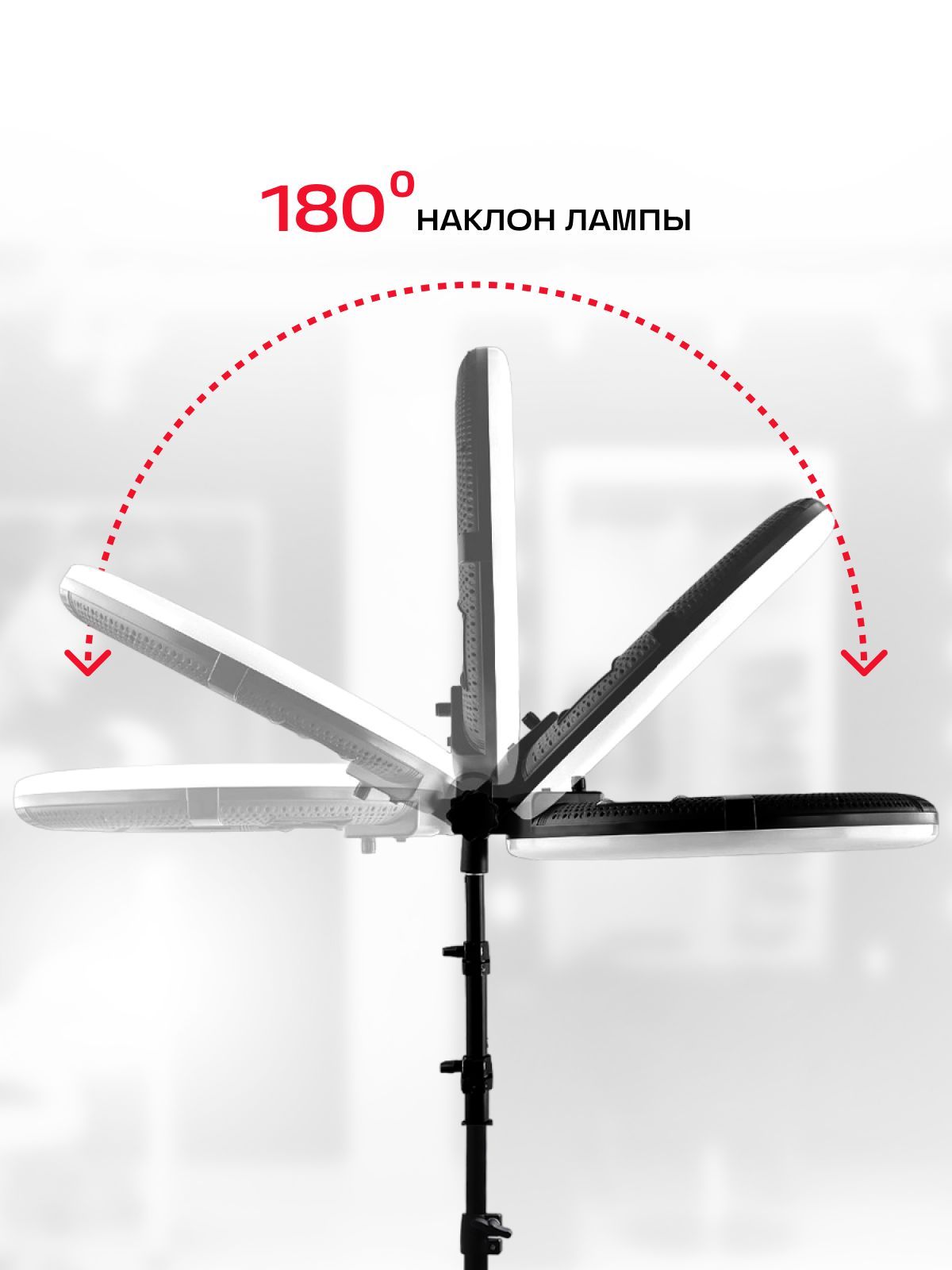 Лампа имеет два экрана, на которых отображаются параметры яркости, а также цветовая температура. Запоминает последние настройки. Угол наклона лампы легко изменяется на 180 градусов, удобный, устойчивый штатив регулируется по высоте от 48 см до 185 см.