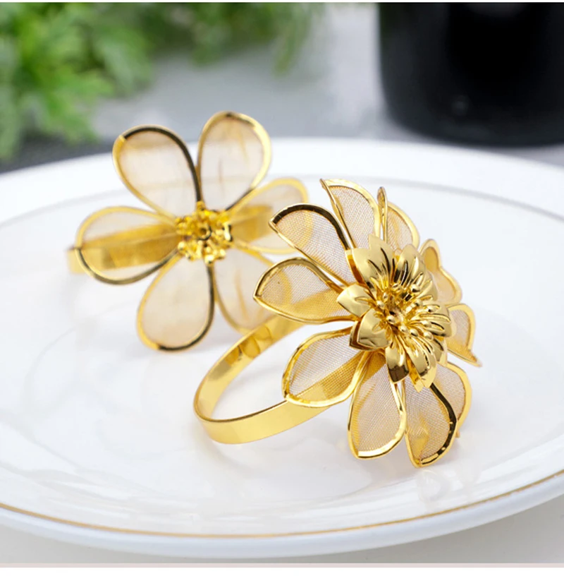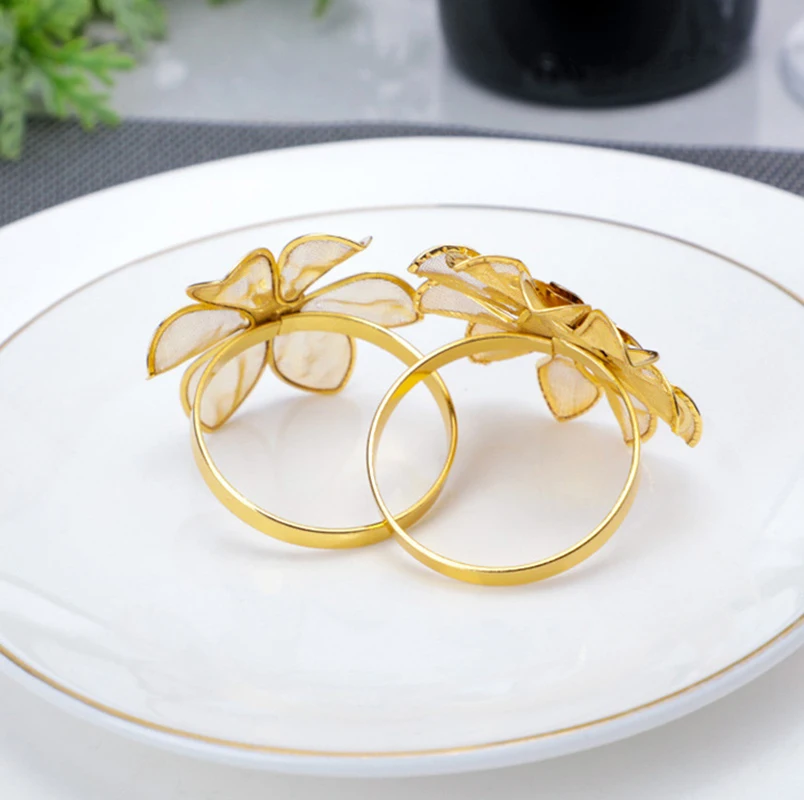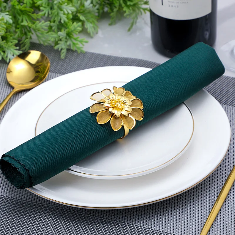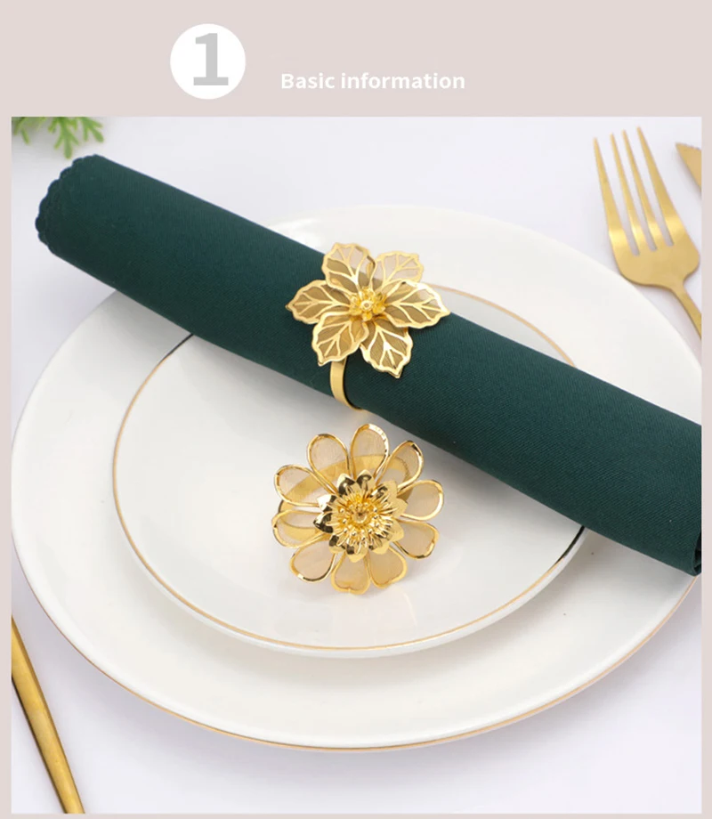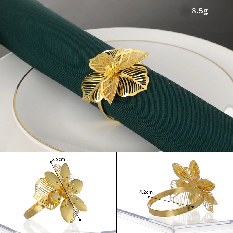 1. Пряжка для металлическая для салфеток с искусственным цветком, кольцо для салфеток в западном стиле, кольцо для салфеток в гостиничном стиле, кольцо для салфеток с гальваническим покрытием