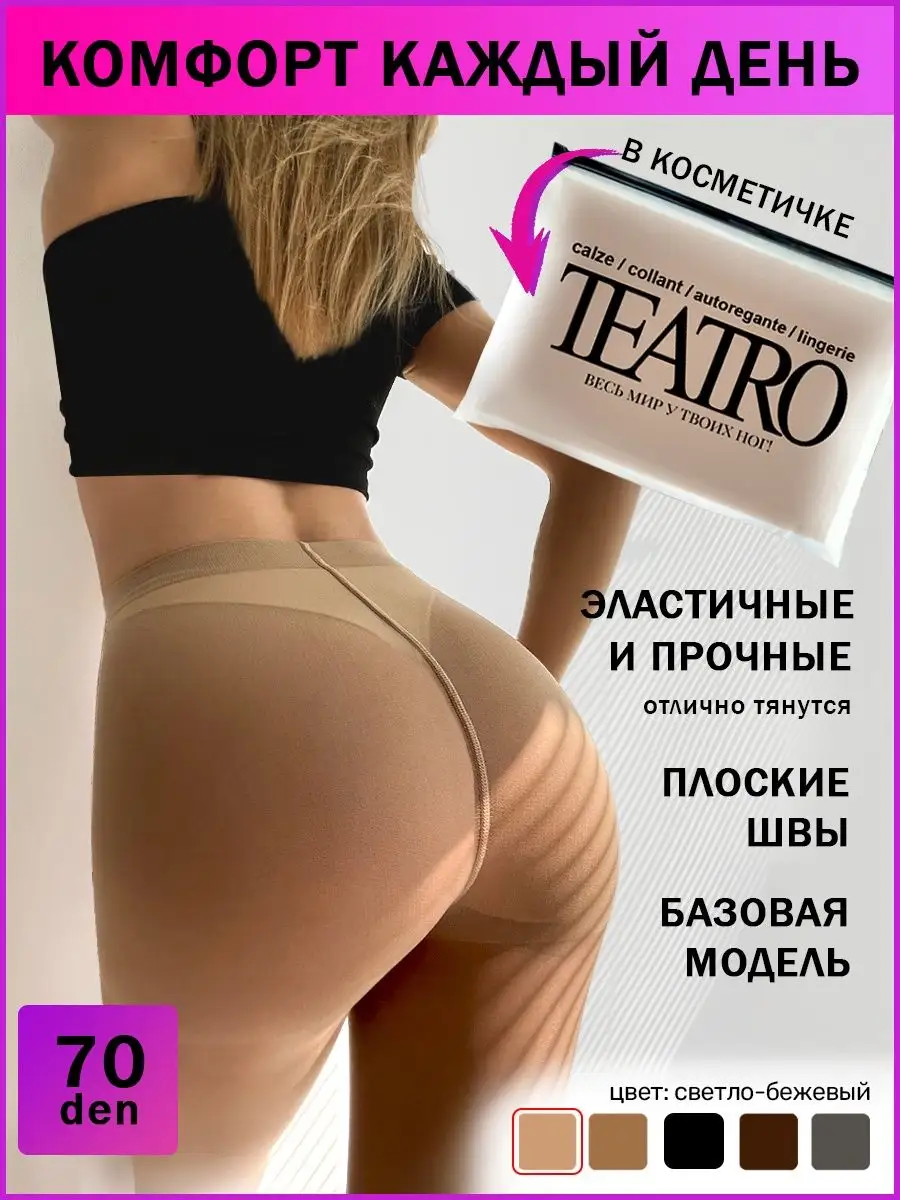 Описание: Колготки - незаменимая вещь в гардеробе, как взрослых женщин, так и юных девушек. Эластичные цветные колготы без ластовицы, темные и светлые - универсальное и стильное дополнение вашего образа. Прозрачные и тонкие, как капрон, мягкие и шелковистые на ощупь, они удовлетворят даже самых требовательных, ведь они практически не рвущиеся и не боятся зацепок! Модные колготки без застежек плотностью 70 den с шортами и широким поясом резинкой подойдут на любой рост, а линейка размеров включает все - от самого маленького до самого большого. Эти красивые колготки - просто находка для полных дам, ведь они обладают моделирующим утягивающим эффектом. Шортики с завышенной талией и удобной посадкой слегка утягивают бедра и сглаживают животик. Они имеют плоский шов и совершенно не выделяются даже под облегающей одеждой. Несомненно, что колготки, обтягивающие милые женские ножки - это товар первой необходимости! С шортиками, высокой талией полу матовые чёрные бежевые коричневые серые. Капроновые женские колготки Teatro WEEKEND 70 den, на каждый день. Идеально подчеркивают контуры Вашего тела и красоту Ваших ног. Плоские швы не выделяются из-под одежды, поэтому внешний вид получается аккуратным и завершенным. Основное преимущество этих колготок состоит в качественном материале при производстве которого используются оплетенный эластан и нейлон 6.6. Эластичные, мягкие и шелковистые на ощупь - гарантия того, что Вы останетесь довольны покупкой и захотите носить их снова и снова. Ваши ножки всегда будут привлекать мужское внимание. Идеальное соотношение ЦЕНА-КАЧЕСТВО!Черные,бежевые,телесные,натуральные,шоколадные,серые,коричневые,сексуальные,фантазийные,утягивающие,корректирующие,с утяжкой живота, в сеточку, шерстяные, теплые с начесом, зимние, цветные, хлопок, носки, чулки, большие размеры - все это Вы найдете в ТМ TEATRO на Wildberries.У нас всегда можно купить товары в подарок по акции, со скидкой или на распродаже!