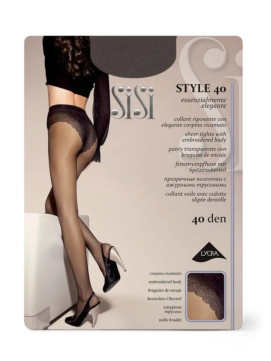 Описание: Колготки женские SiSi STYLE 40 den - эластичные колготки с ажурными трусиками. Превосходно облегают и комфортно ощущаются на теле. Удобные швы и гигиеничная ластовица создают дополнительный комфорт. Благодаря невидимому мыску колготки можно носить даже с открытой обувью. Ажурные трусики придают колготкам особую женственность и изысканность Женские колготки SiSi STYLE 40 den отлично подходят в качестве базовой модели на каждый день и сочетаются практически с любым образом. Капроновые колготки SiSi - отличный подарок девушке, женщине, маме, подруге, девочке подростку на любой праздник. Цвета: белый - Bianco, бежевый - Daino, графит - Grafite, темно-серый - Londra, светло-бежевый - Miele, коричневый - Moka, светло-коричневый - Naturelle, черный - Nero.