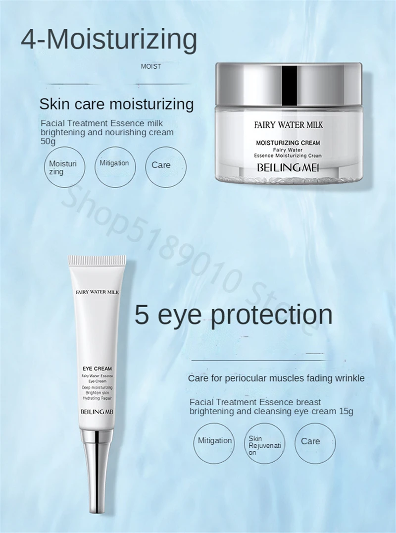 Шаги использования:Сначала очистите лицо очищающим средством для лица, затем используйте тоник, затем используйте жидкую эссенцию, крем для глаз и лосьон для лица, в последний раз используйте крем для лица.