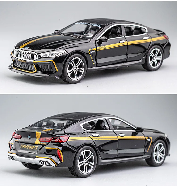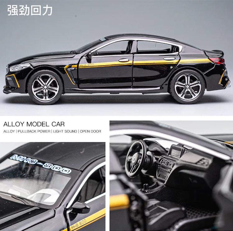 Коллекция 1/32 года, модель автомобиля BMW MH8 800 дюйма, литой автомобиль, игрушка для детей, миниатюрная модель со звуком и искусственными элементами, подарок для мальчиков, детский подарок