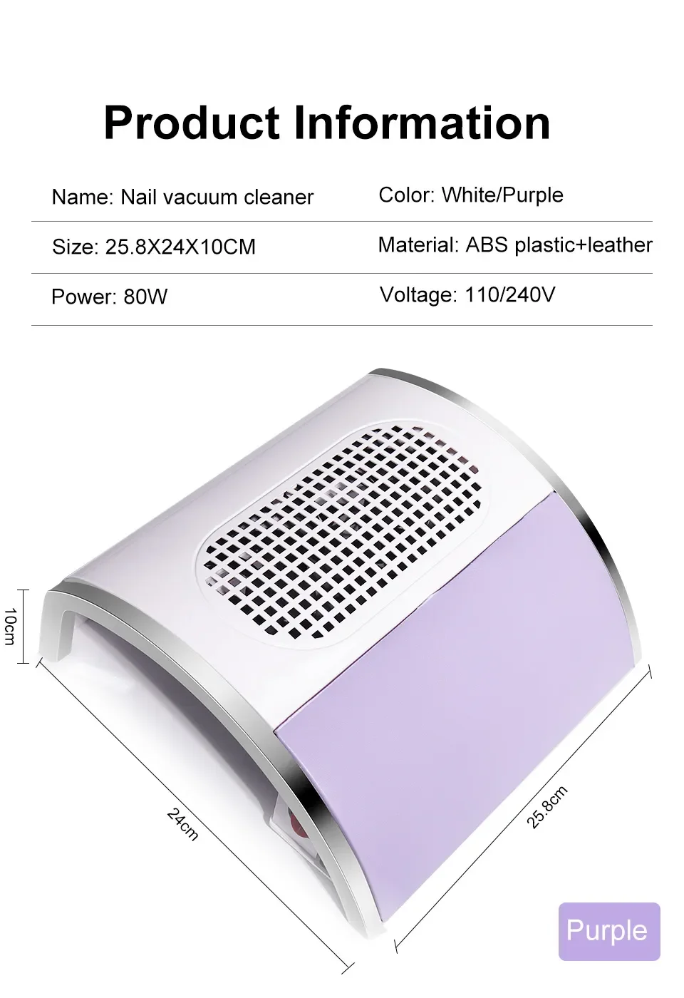 • Многофункциональность:Этот пылесборник для ногтей предназначен не только для ногтей, но также может использоваться для других целей красоты и здоровья, что делает его универсальным инструментом для всех ваших нужд.