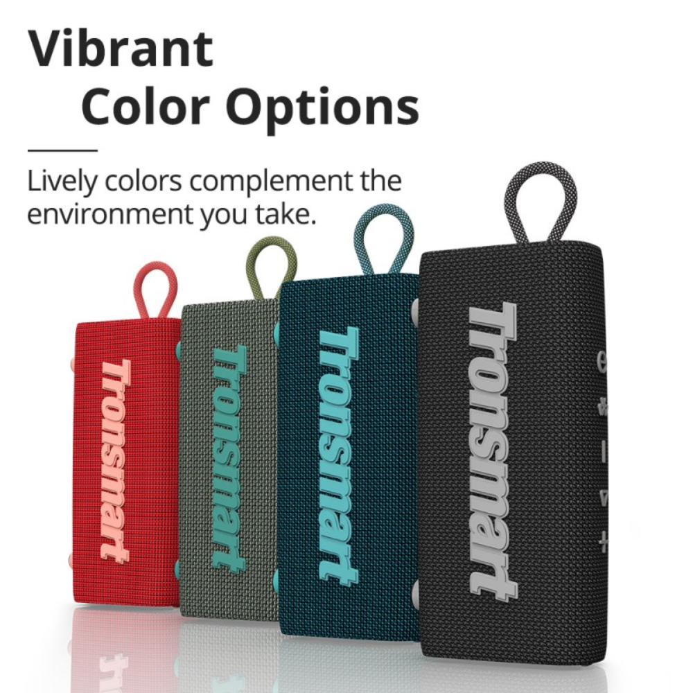 Tronsmart Trip 10W обладает стильным и ярким дизайном, а для удобного ношения предусмотрена специальная тканевая ручка. Компактные размеры позволяют без труда носить акустику с собой куда бы вы не отправились. Для питания в модели использован встроенный аккумулятор емкостью 2000 мАч, что позволит прослушивать музыку без подзарядки до 20 часов.