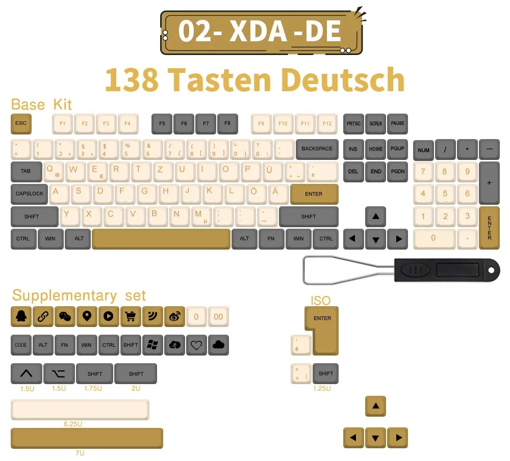 Колпачки для клавиш Xda Profile Pbt, механическая клавиатура Cherry MX с макет iso, испанская/Русская/японская/Корейская/французская/немецкая клавиатура