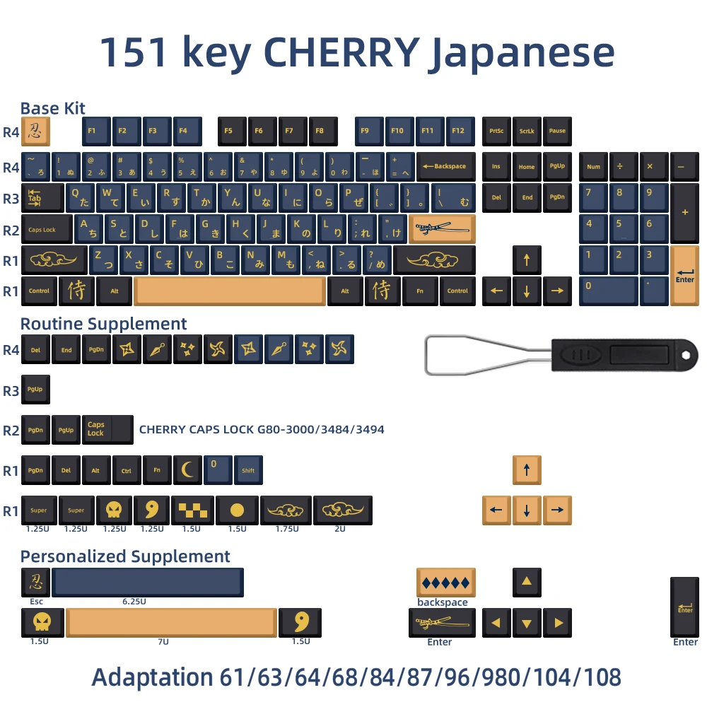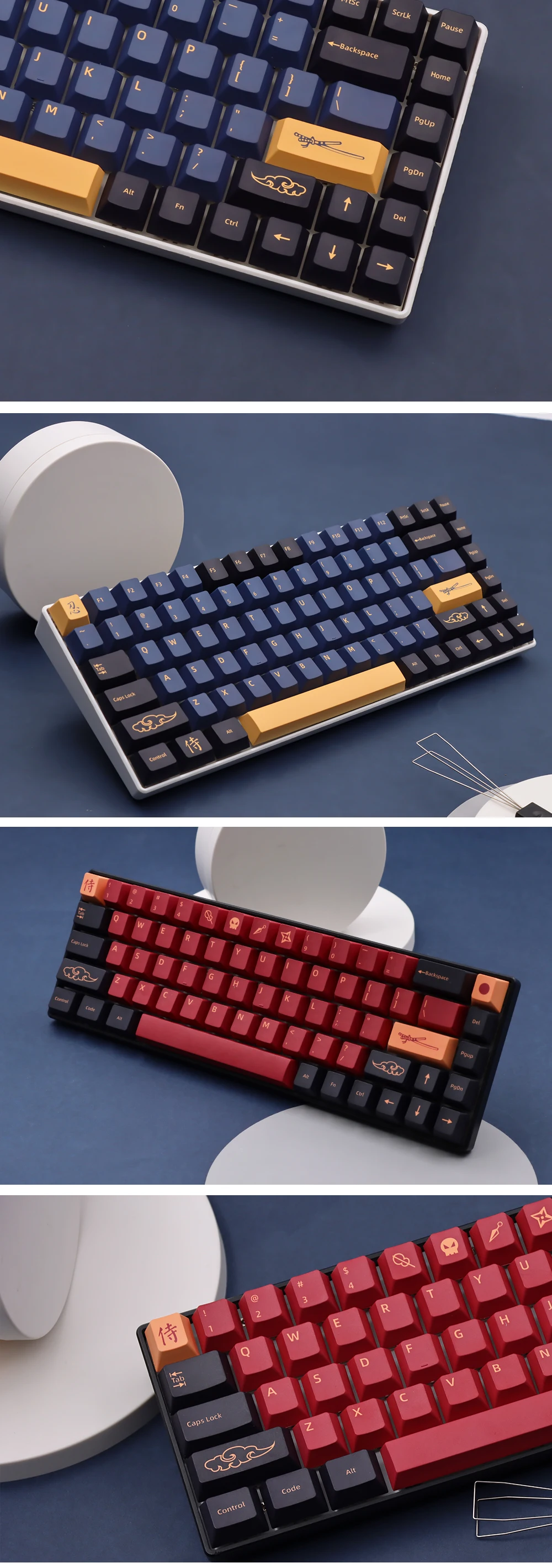 Колпачки для ключей samurai ik75 mk870, клавиши с синими самурайскими ключами, высота вишни, PBT, для механической клавиатуры GMK anne pro 2 ck61 gk64 rk68 feker