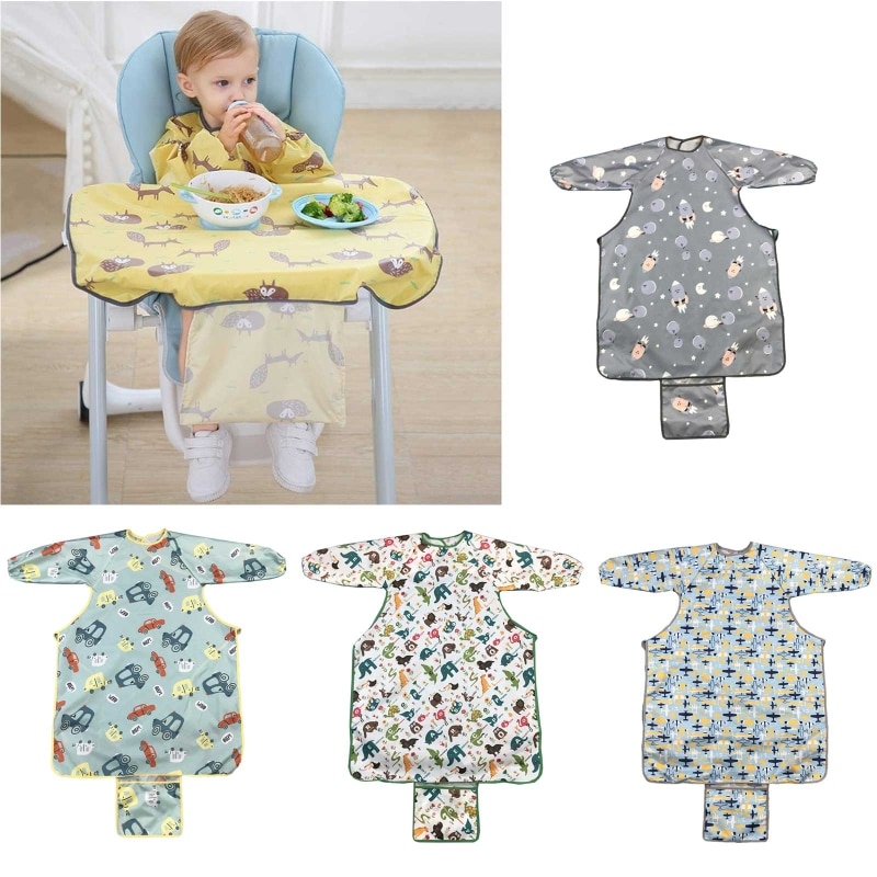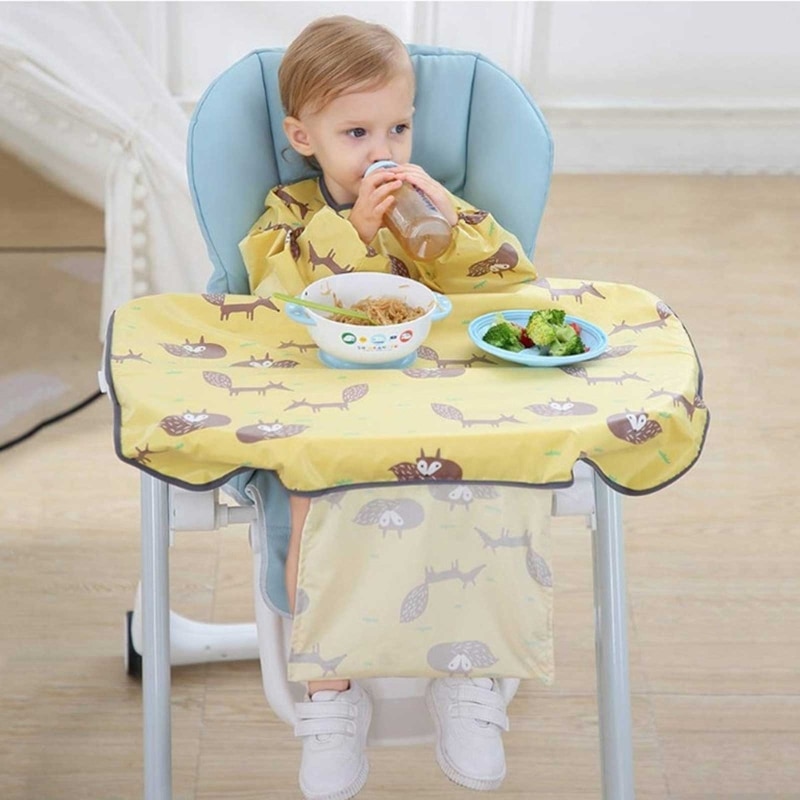 Комбинезон с длинным рукавом для новорожденных, скатерть, накидка для обеденного стула, слюнявчик, фартук для кормления, аксессуары для кормления