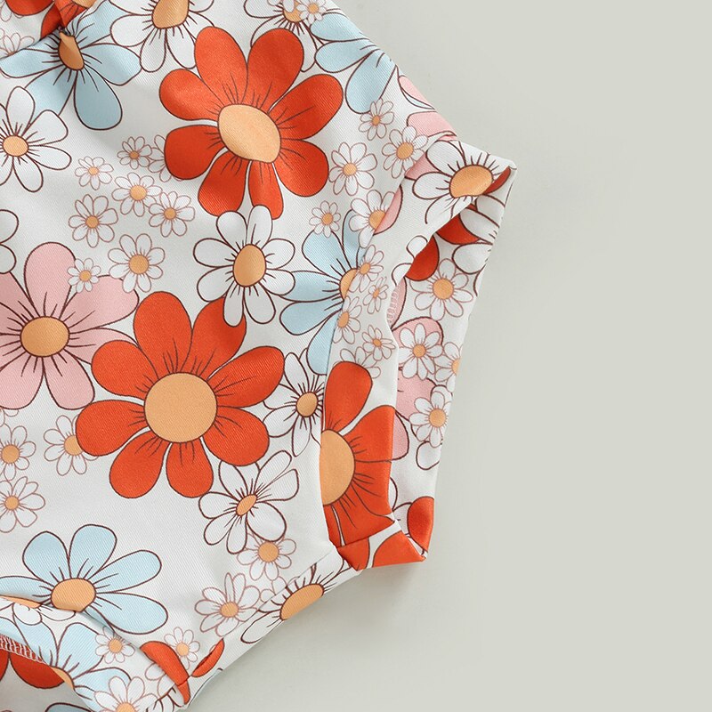 Комбинезон с коротким рукавом для новорожденных, шорты с цветочным принтом и повязка на голову, 3 предмета