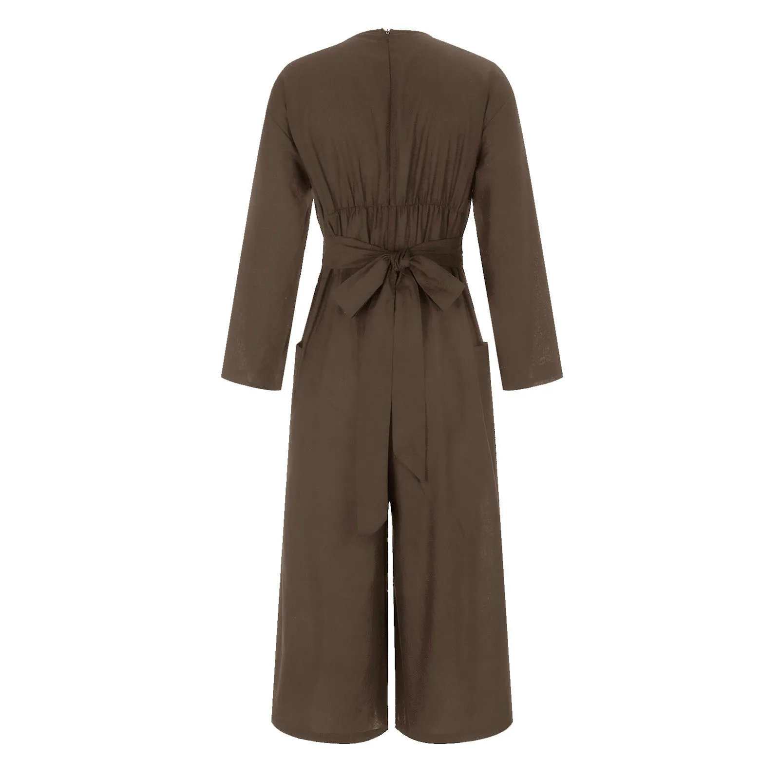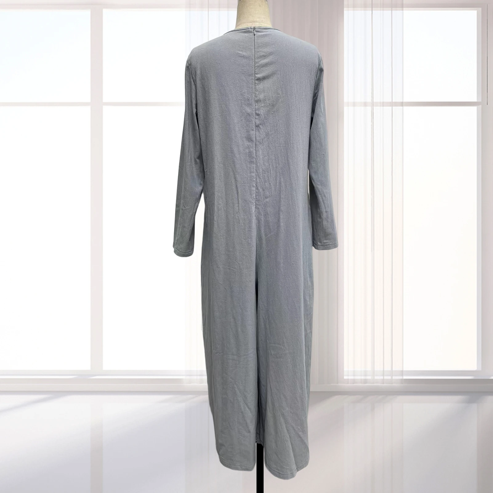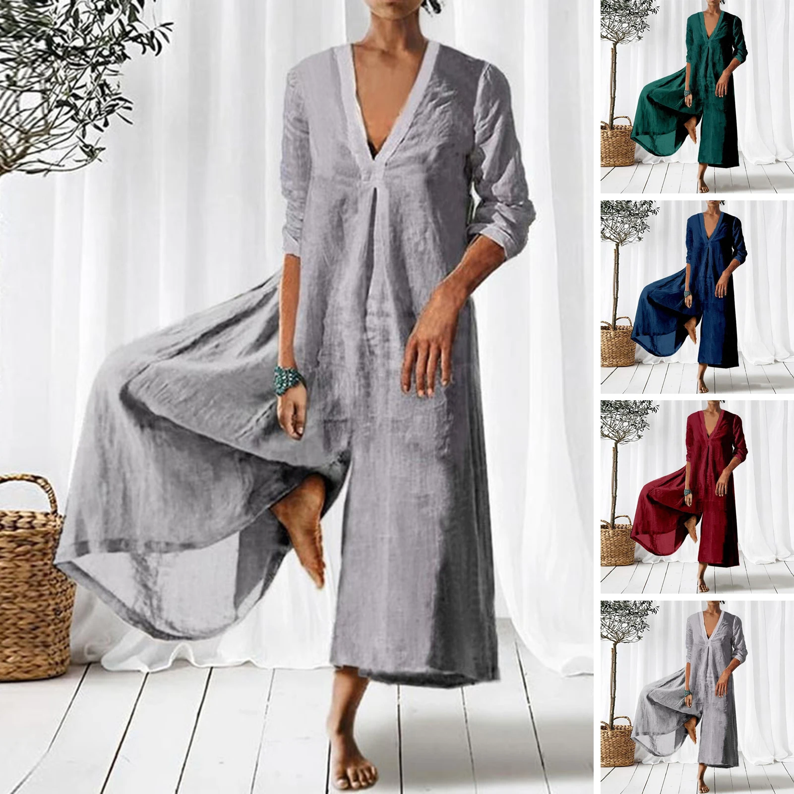 Комбинезон Женский свободного покроя, повседневный однотонный хлопково-льняной костюм средней длины, с длинным рукавом, в стиле оверсайз, на лето