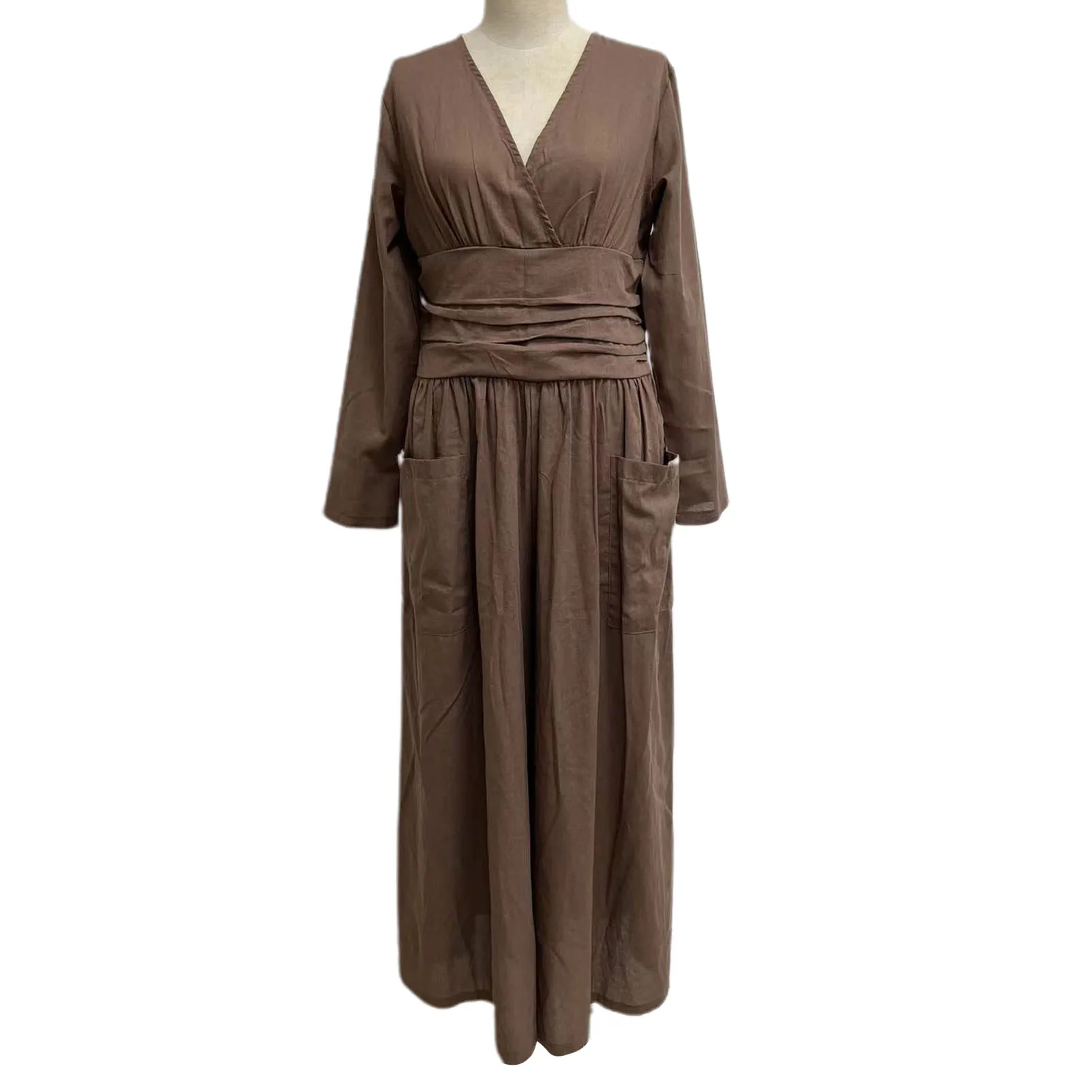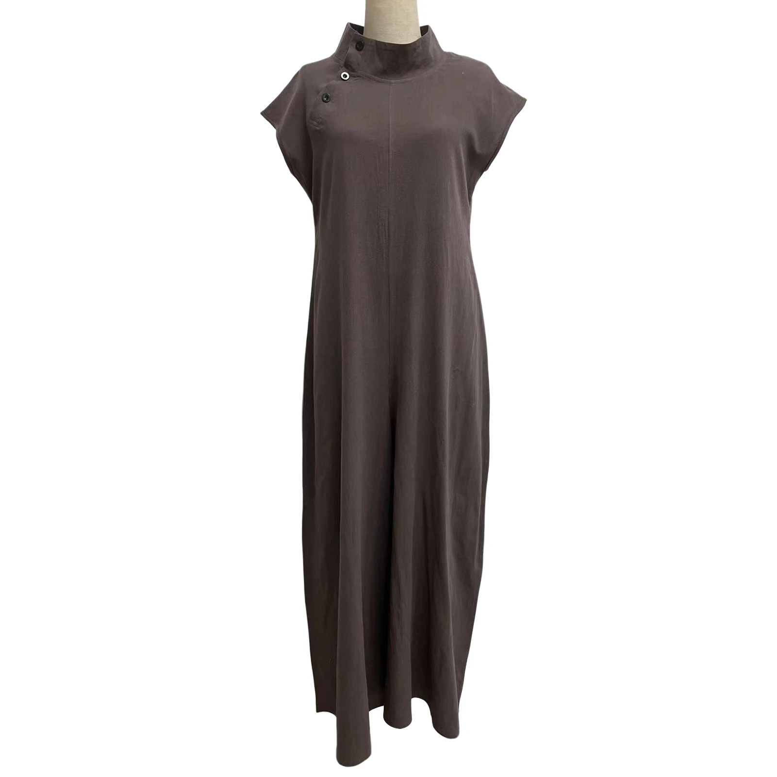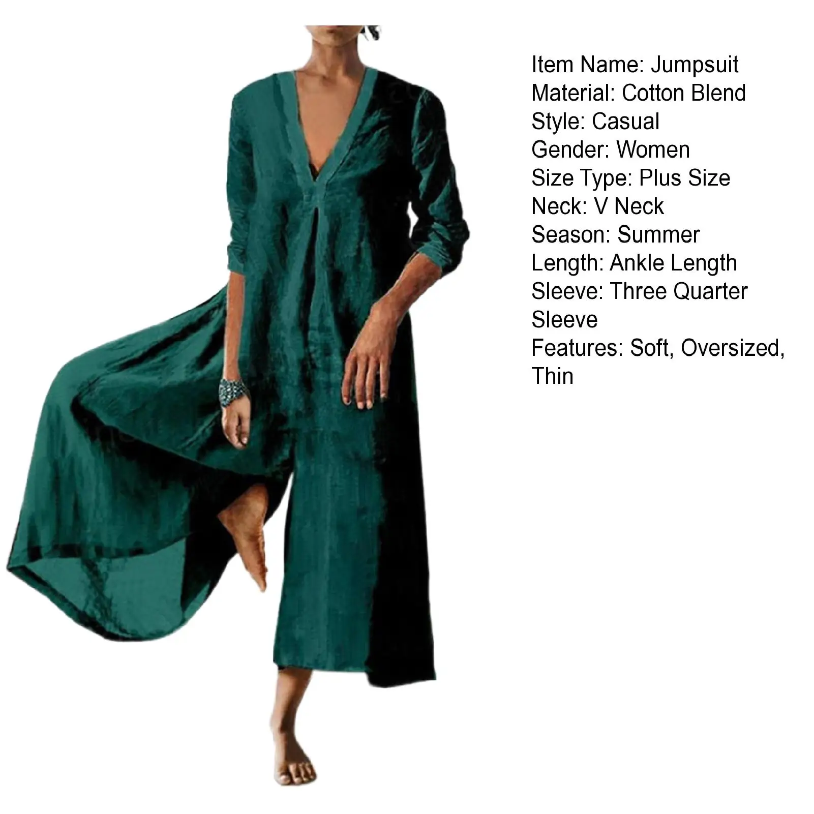 Комбинезон Женский свободного покроя, повседневный однотонный хлопково-льняной костюм средней длины, с длинным рукавом, в стиле оверсайз, на лето