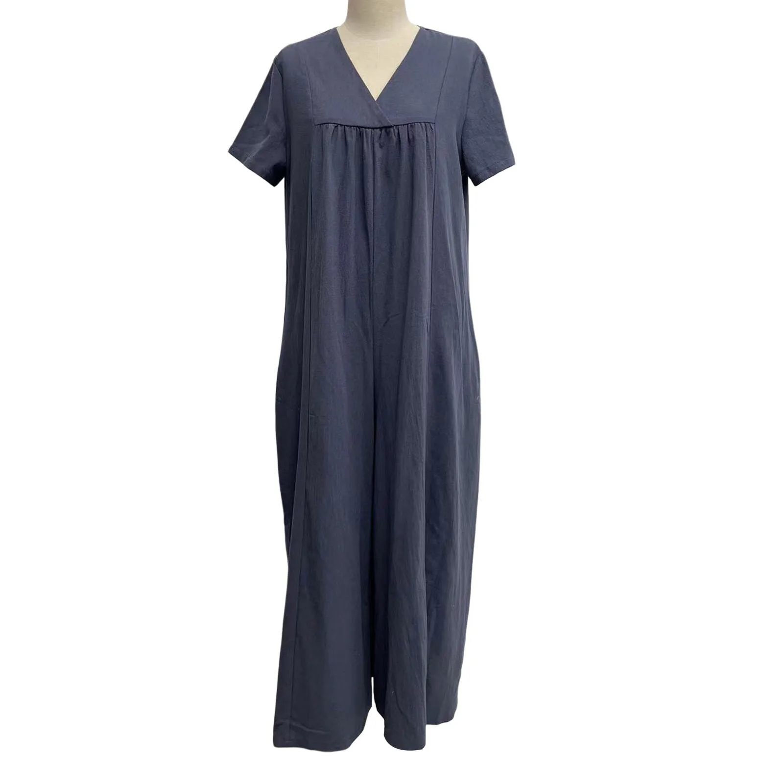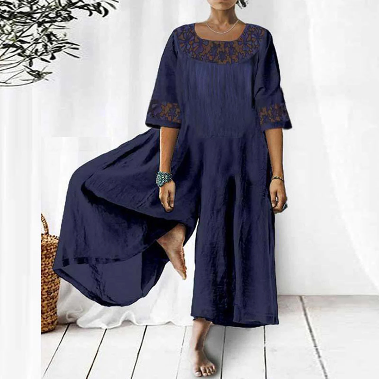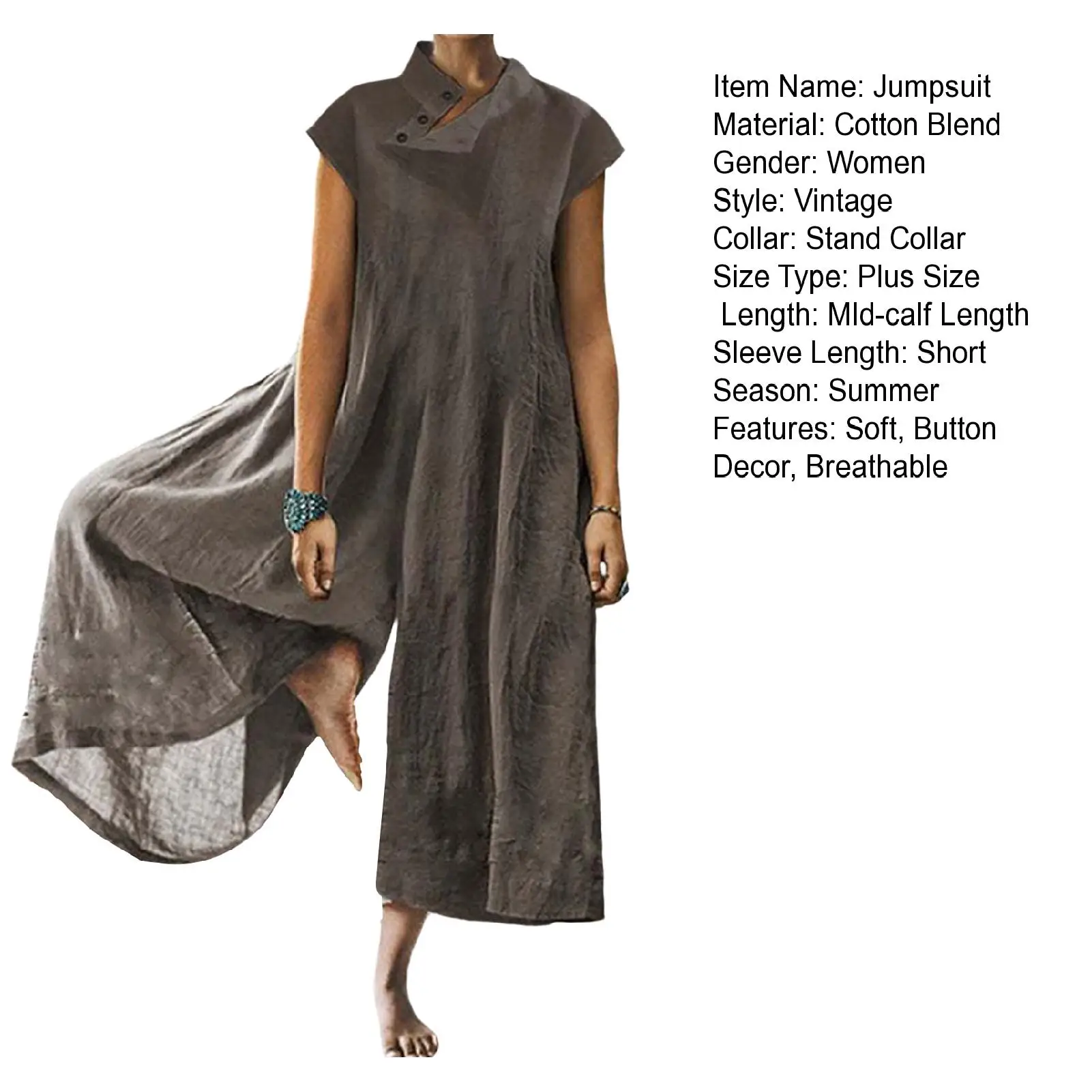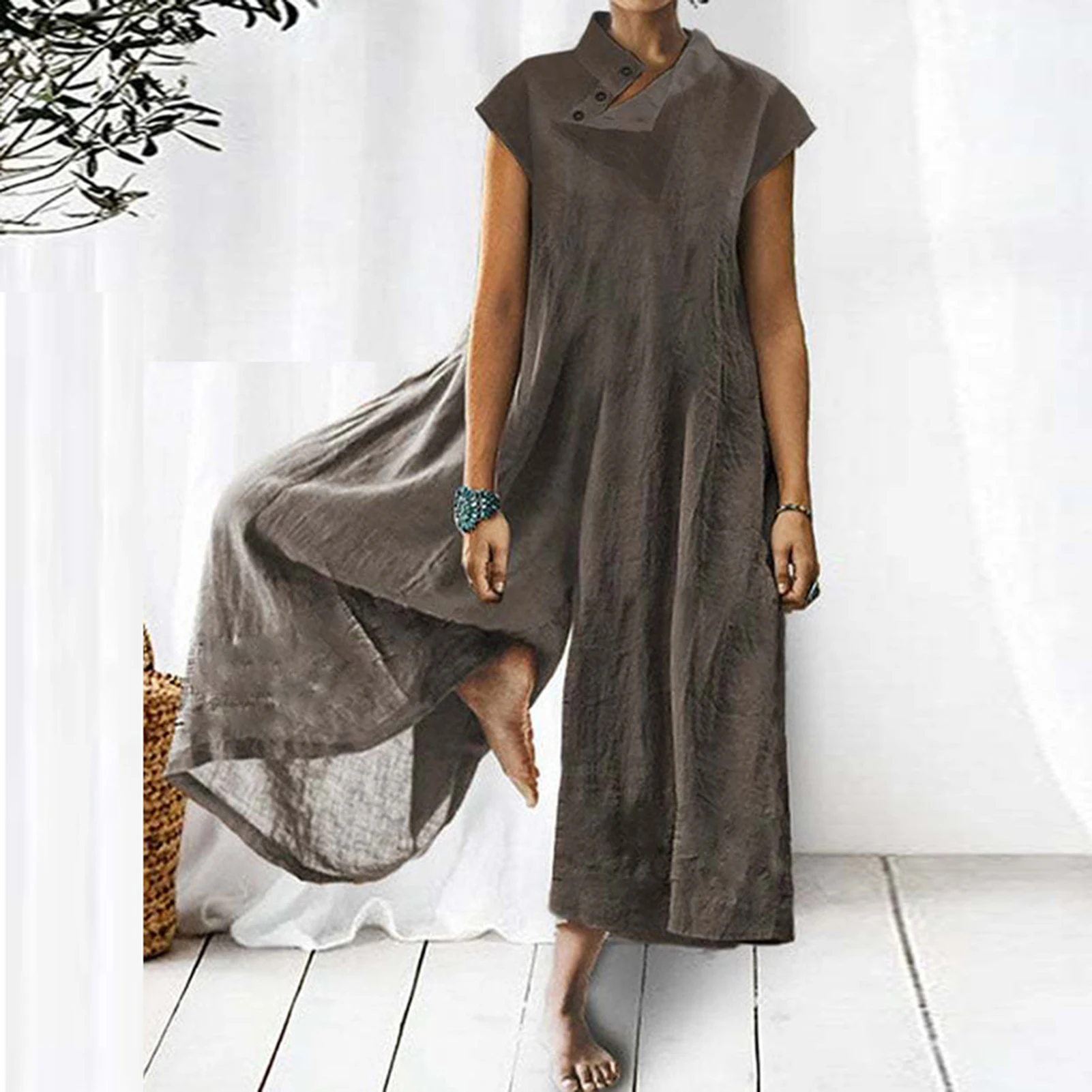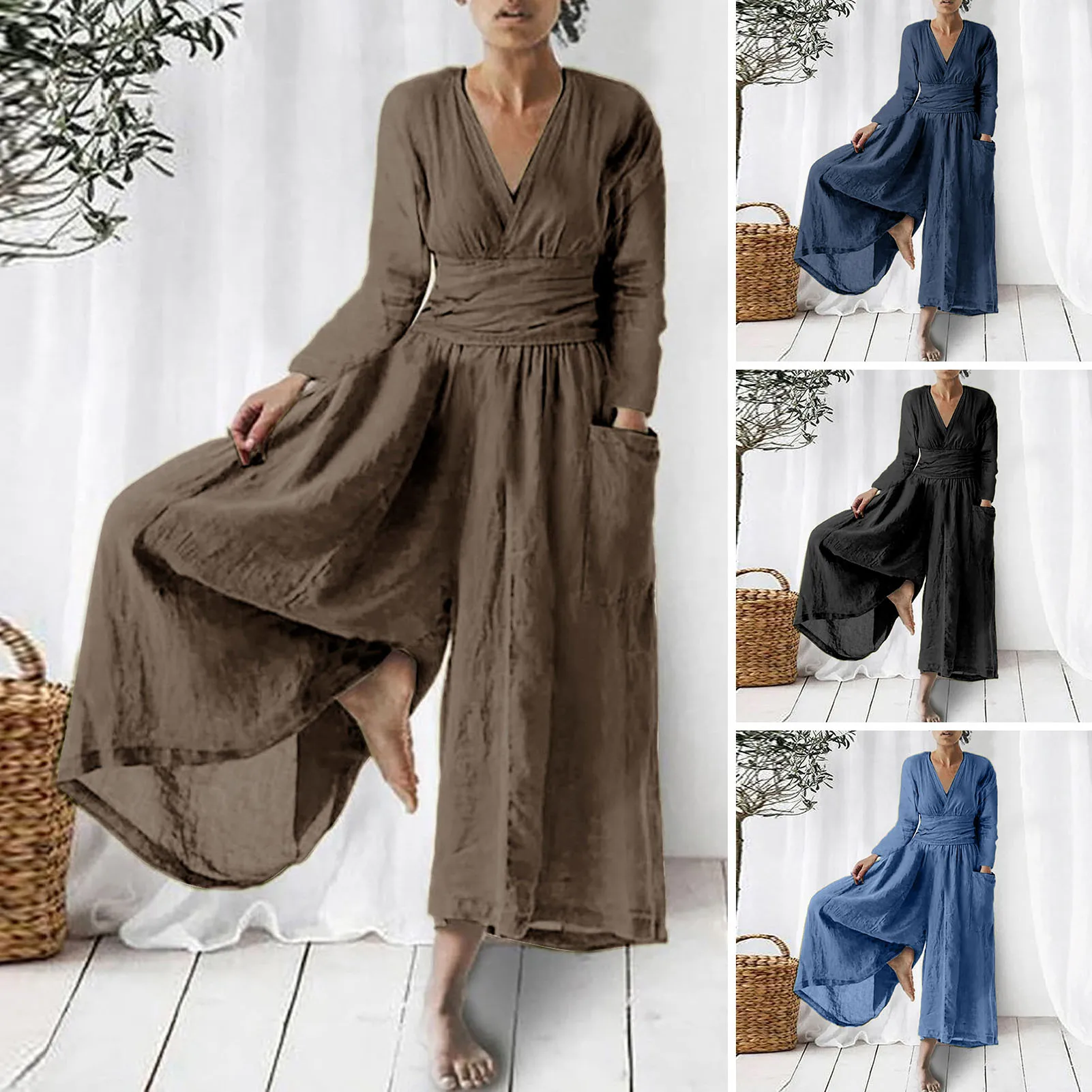 Женский комбинезон весна-лето с отложным воротником свободные хлопковые льняные дышащие повседневные широкие брюки длинные Комбинезоны Повседневная одежда