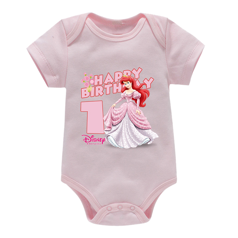 Комбинезоны для маленьких принцесс Disney, Золушка Ариэль, это мой первый день рождения, детская праздничная одежда, хлопковые наряды для девочек, подарки для душа