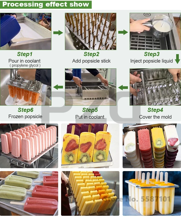 Машина эскимо серии ПЗГ вид оборудования используемый для охлаждать и формировать машину эскимо, соответствующую для магазинов холодного напитка, фабрик пищевой промышленности, ночных магазинов, различных зон развлечений и других мест. Машина Popsicle имеет систему управления микрокомпьютера, которая может контролировать температуру более точно. Он имеет характеристики высокоскоростной рефрижерации, быстрого прототипирования, легкой деятельности и тихой деятельности. Форма и размер формы для мороженого могут быть изменены, что соответствует всем требованиям клиентов. Это идеальное оборудование для производства мороженого.
