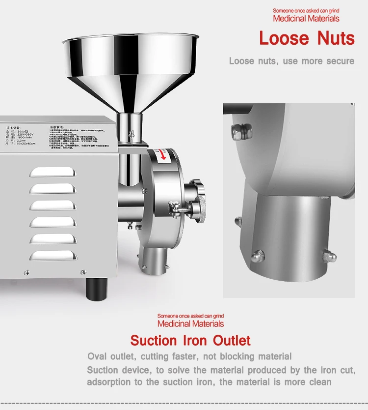 1 шт. 3000 Вт Сверхтонкая зерновая мельница из нержавеющей стали Коммерческий травяной лекарственный измельчитель Сухой шлифовальный станок