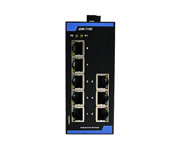 IDM-7180 Промышленный коммутатор Ethernet-это промышленный 8-портовый коммутатор Ethernet начального уровня, который поддерживает IEEE 802,3/802.3u/802.3x с 10/100M, полный/полудуплексный, порты RJ45 с автоопределением MDI/MDIX. Переключатель IDM-7180 рассчитан на работу при температурах от-20 до 70 ° C и достаточно прочен для любых суровых промышленных условий. Переключатели могут быть легко установлены на DIN-рейку, а также в распределительные коробки. Крепление на DIN-рейку, источник питания постоянного или переменного тока 24 В, светодиодные индикаторы делают переключатели plug-and-play простыми в использовании и надежными.