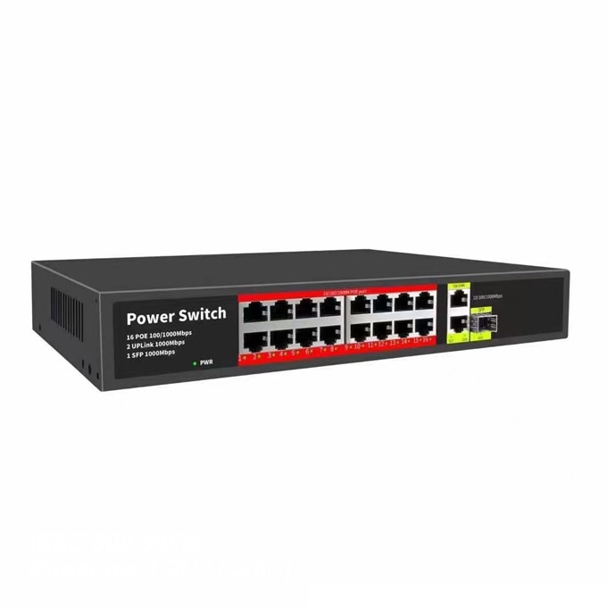• 16-портовый порт 10/100 Мбит/с питанием через порты Ethernet+ 2 порта восходящего соединения Giabit + 1SFP