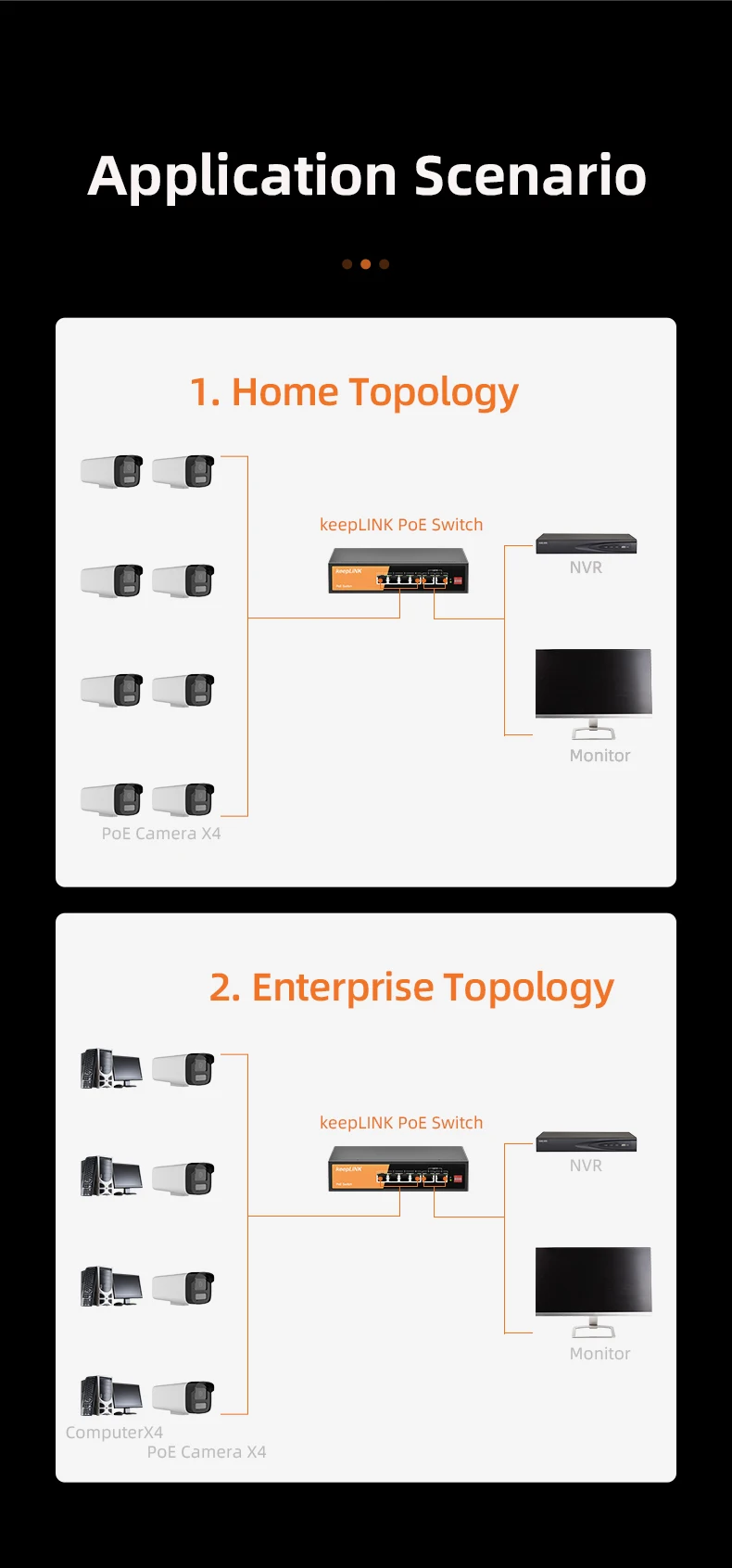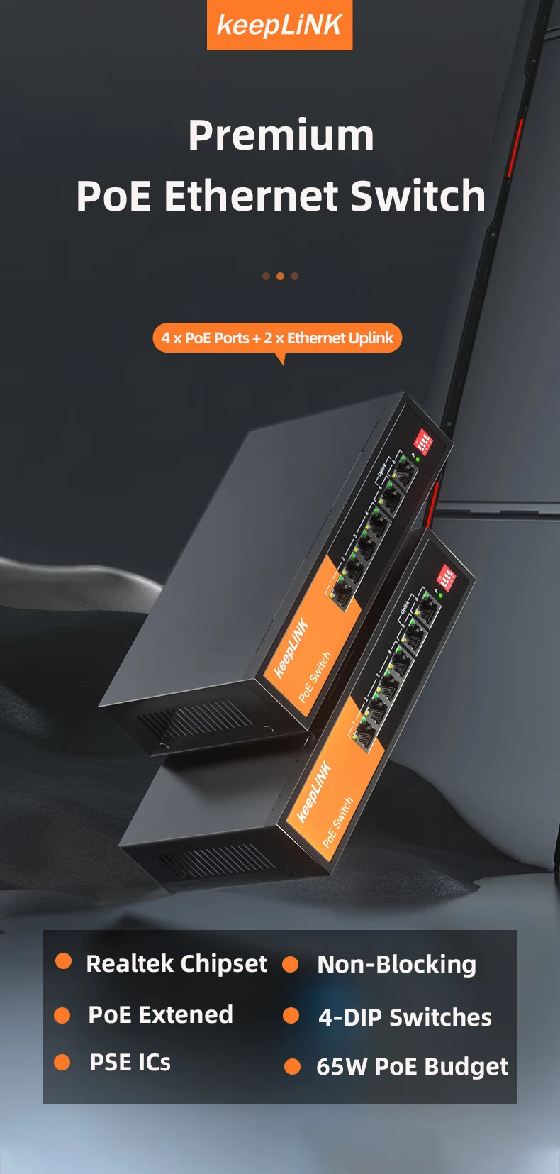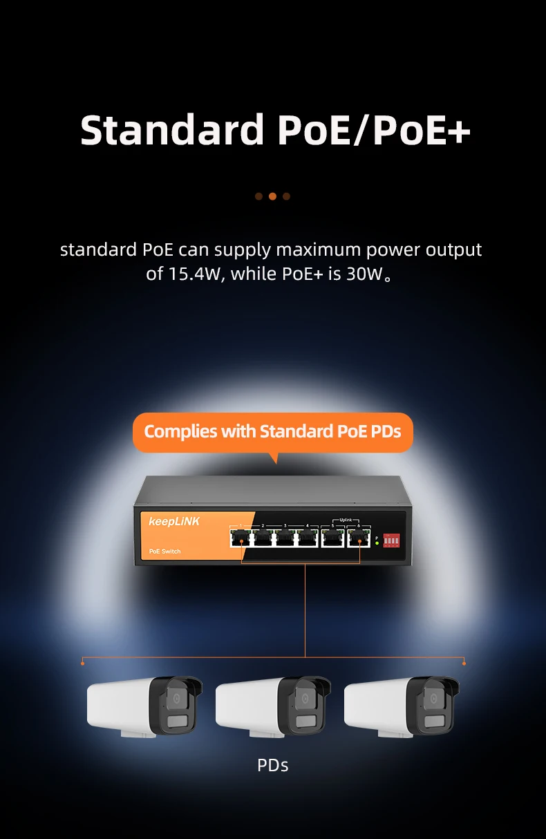 KeepLink KP-9000-6GP-AC-это четыре (4) порта PoE + и два (2) гигабитных коммутатора восходящего канала Ethernet, предназначенных для использования в домашних, небольших или средних сетевых средах. С 4 DIP-переключателями, порт PoE можно вручную настроить для управления ВКЛ-ВЫКЛ, чтобы увеличить расстояние доставки PoE до 250 метров, а также поддерживать NO-OFF на основе портов для функций VLAN и QoS и бесперебойного PoE. Он легко подключает и подает питание на устройства с поддержкой PoE, такие как точки беспроводного доступа, сетевые камеры и IP-телефоны, а также на другие устройства с поддержкой Ethernet, такие как компьютеры, принтеры и сетевое хранилище (NAS). Компактный размер устройства и безвентиляторная конструкция делают его идеальным решением для расширения домашних сетей и сетей малого бизнеса.
