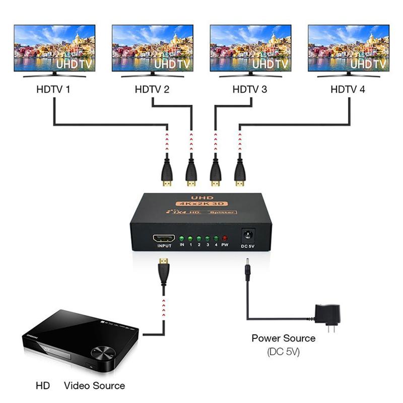 2. Совместимый с Hdmi разветвитель с 1 входом и 2 выходами может одновременно распределять 1 совместимый с Hdmi источник на 2 совместимых с Hdmi дисплеев.